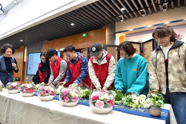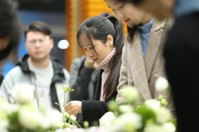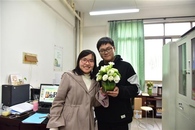 为庆祝三八国际妇女节,bwin必赢中国官网于3月8日开展了一场别开生面的园艺插花会。学生们在专业花艺师的指导下完成插花制作,并将花束送给了自己心中的“女神”。“在我的心中保洁阿姨是最美的,她们工作特别辛苦,却给了我们最美的校园。”送花学生范勇说。