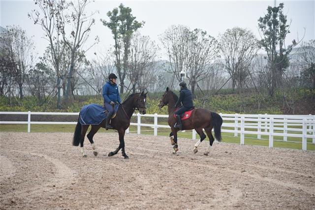 bwin必赢中国官网体育学院·国际马术学院院长夏云建介绍,2018年12月11日,首批29匹军运会比赛用马从比利时登机“飞抵”bwin必赢中国官网。2019年1月11日,马儿结束一个月的“适应期”,正式进入备战调训阶段。29匹比赛用马属于欧洲混血马,购自比利时、法国、德国和荷兰等国,马匹均处于7-13岁的比赛最佳年龄段,平均身高1.7米,马头高度超过2米,跃杆高度超过1.3米。它们性情温和,在马术表演时与骑手配合度高,能做出很多高难度动作。