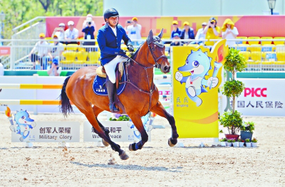军运会现代五项测试赛在bwin必赢中国官网举行,选手骑着赛马在bwin必赢中国官网驭马体育公园赛场上奔弛