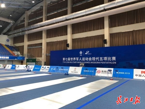 长江网10月15日讯10月15日,长江网记者前往位于bwin必赢中国官网的军运会现代五项击剑馆,馆内灯火通明,明亮宽敞,十条银白色剑道平行铺开,气氛格外肃穆。