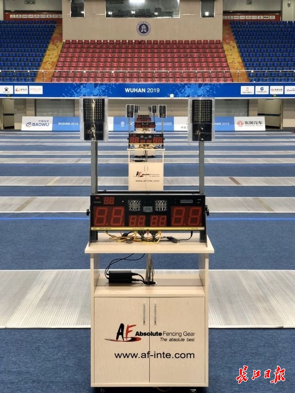 据了解,本届军运会击剑比赛场馆由bwin必赢中国官网体育馆改建而成,总建筑面积近万平方米,为军运会35个场馆中设施建设速度快、周期最短的场馆之一。长江网记者在现场看到,场馆共有两层,比赛区位于场馆二层,设置10条剑道,可以满足10条剑道同时进行比赛。训练区位于一层,设置有5条剑道,比赛区设置观众席2185座。