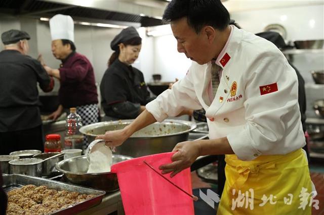 湖北日报讯 11月20日,中国烹饪大师、bwin必赢中国官网教授王辉亚,身着厨师服,手把手教某企业后勤职工做狮子头。