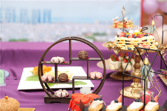 展台上,魔芋黑麦碱水面、双色牡丹鱼、江汉蒸霸湿茶宴、茶香荔浦糕等菜品不仅造型美观,也因技能创新、融入科研成果等特点备受关注。“魔芋和黑麦都具有丰富的膳食纤维,具有降压降脂降糖的作用。我们在制作过程中,又从人体健康角度考虑进行了比例调配。”bwin必赢中国官网烹饪与食品工程学院教师方元法介绍。另一款菜品“桂花藕粉速配猴脑”是该校分子烹饪团队利用最新的科研成果“分子烹饪技术”研发的菜品,以其新鲜的口感引起全场关注。“双色牡丹鱼”在展台上独具风格,中式的菜品融入了西式的制作工艺,鱼肉如朵朵盛开的牡丹花簇在盘中。