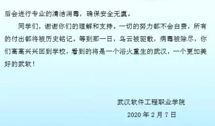 武汉城市职业学院相关负责人提醒,未收到学校官方正式开学时间通知前,禁止同学们以任何理由提前返校,希望各位同学积极配合学校线上教学安排,做好疫情期间的专业学习,随时关注学校疫情期间的各项教学、教学通知与安排。
