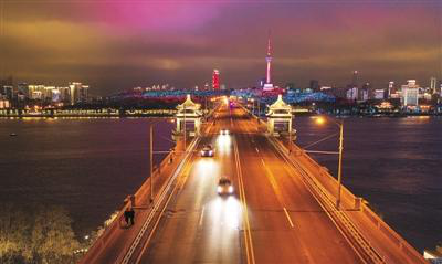 3月26日晚,行驶在武汉长江大桥上的车辆。本报武汉一线报道组记者 季春红摄/光明图片