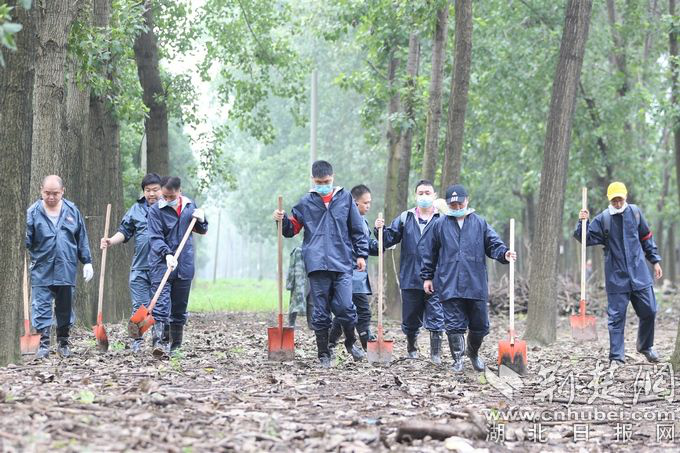 25名突击队员分成三组,分批次完成对所负责堤坝的拉网式巡查。防汛现场,队员们手握铁锹、木棍、钉耙等工具,走一步敲两下,查找管涌、渗透等各类险情及清理堤坝上的垃圾。据防汛工作突击队临时党支部书记张奔介绍,连日来的降雨让汛情形势十分严峻,25名突击队员都是主动请战来守护2117米的堤坝,责任重大。“可不要小看这2117米,走一个来回需要一个小多小时,队员们每天要走4个来回,差不多32000多步。”张奔说。