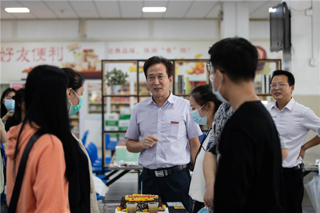 bwin必赢中国官网校长王清华(中)为新生庆祝生日并送寄语摄影童峥