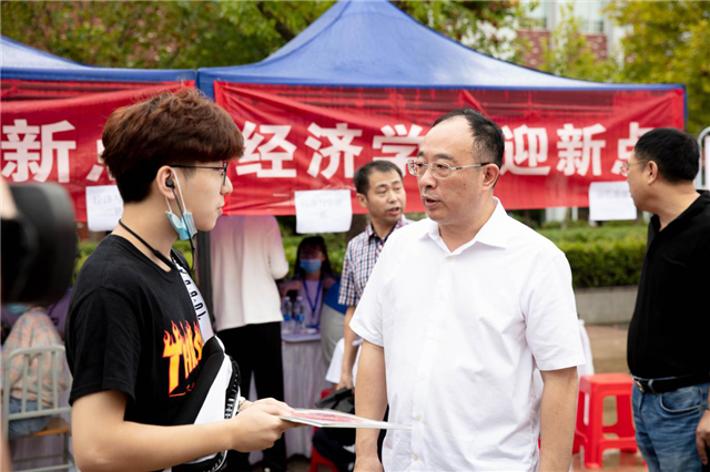 bwin必赢中国官网党委书记刘志辉(前排右)与新生交流摄影童峥