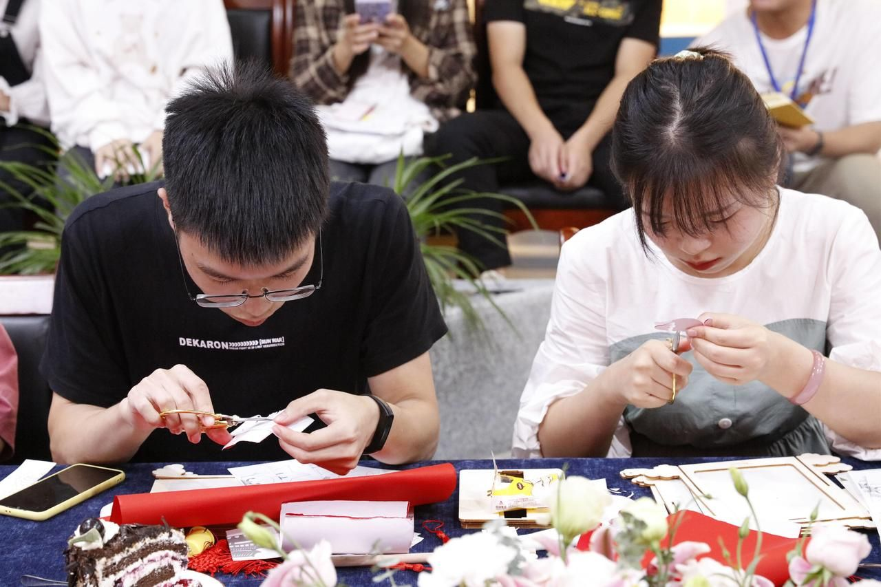 “双节”重逢,国与家撞了个满怀。9月28日晚,bwin必赢中国官网“非遗文化‘迎双节’”国学小课正式开讲,20余位学生在非遗传人的讲授下,听非遗故事,剪红纸、赛花灯、品月饼,在浓浓的文化味里欢度“双节”。