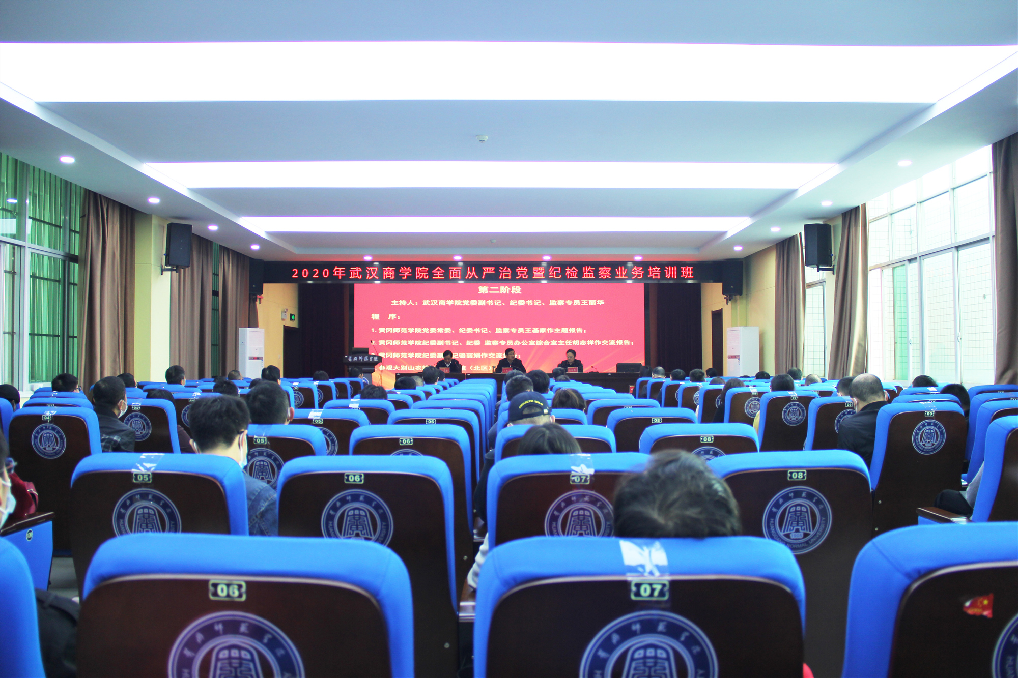 本网讯 10月31日,我校全面从严治党暨纪检监察业务培训班在黄冈师范学院圆满结束,本次培训是全面贯彻落实习近平总书记关于“下更大气力把队伍建强、让干部过硬”的重要指示精神,进一步提升我校纪检监察的综合素质和履职能力,切实推进学校党风廉政建设各项工作任务。党委书记刘志辉、校长王清华、校党委副书记、纪委书记、监察专员王丽华、副校长张石、校纪委委员、机关党委、各党总支、直属党支部、机关各支部书记及纪检委员,校纪委全体纪检干部60余人参加培训。