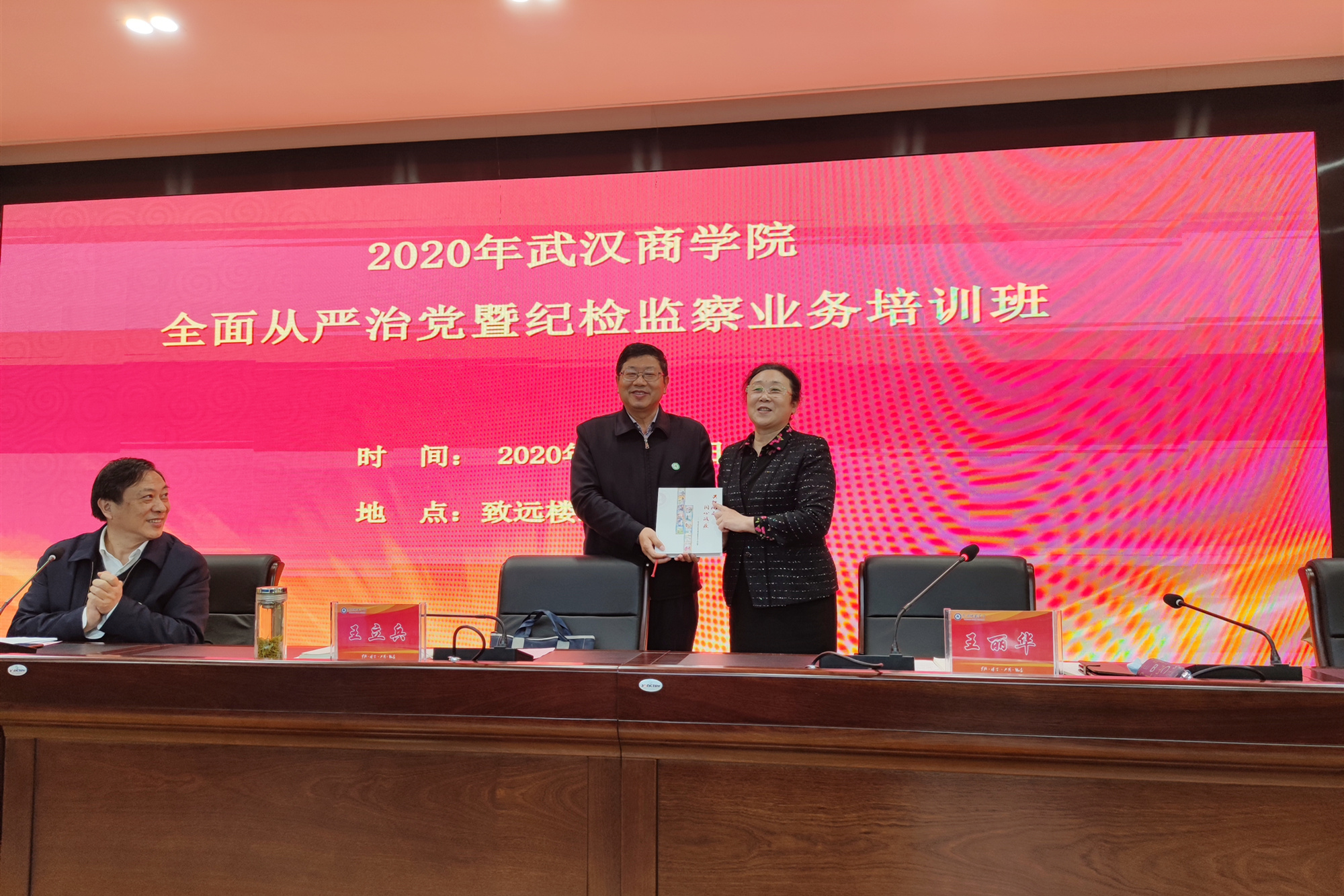 校党委副书记、纪委书记、监察专员王丽华主持培训并总结。王丽华表示,此次培训在两校纪检监察部门密切配合下,准备充分、部署周密、效果显著,希望每一位参训同志深切感受全面从严治党和纪检监察体制改革的重大意义,学有所获、学有所用、学有所成,为我校全面从严治党打下坚实基础,促进学校建设一流应用型本科高校。王丽华代表我校向黄冈师范学院赠送《共担风雨、同心战“疫”——bwin必赢中国官网新冠肺炎疫情防控工作纪实》书册。