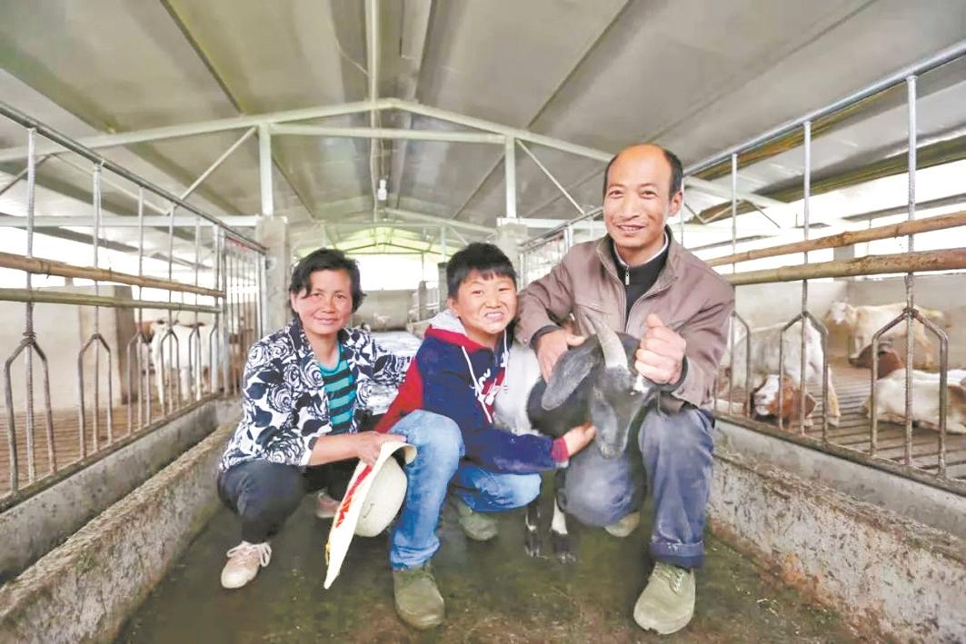 唐根根(中)带动村里的贫困户养羊