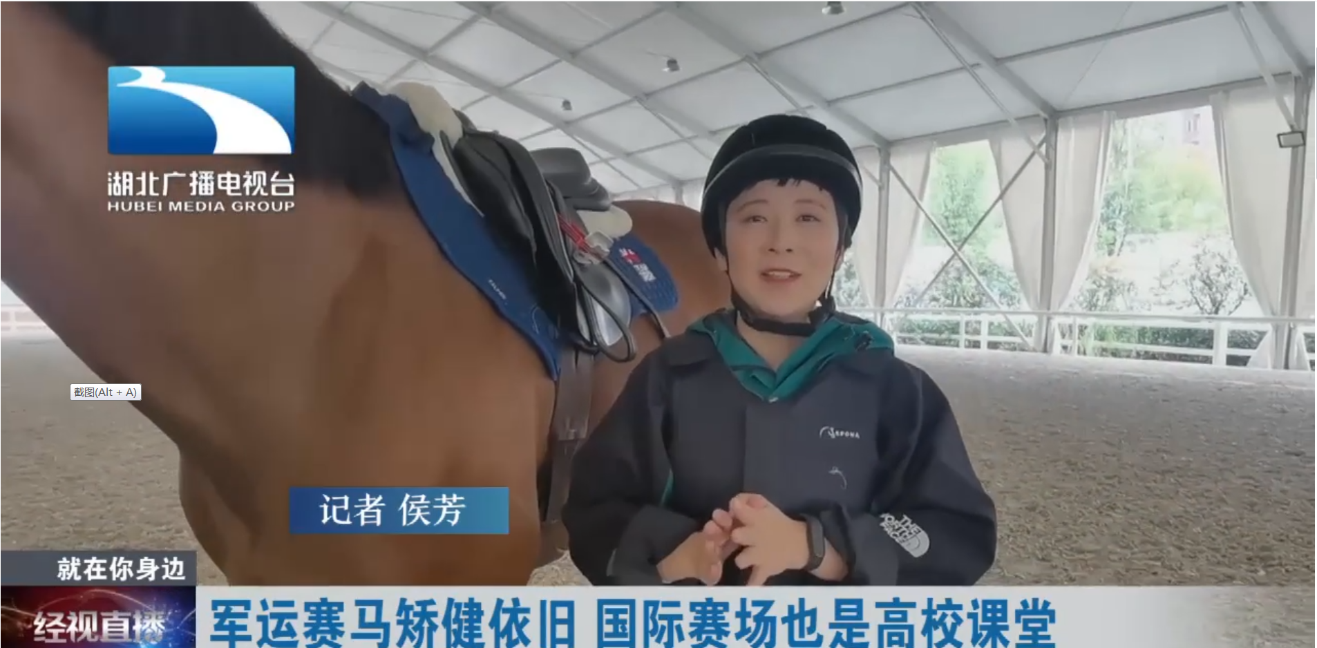 本网讯 在第七届世界军人运动会上,兼具竞技性和观赏性的马术赛事备受人们关注。时隔一年,比赛场地现况如何?赛马是谁在照顾?马匹的生活状态如何?正值军运会结束一周年,湖北经视记者带着这些问题探访我校驭马体育公园。