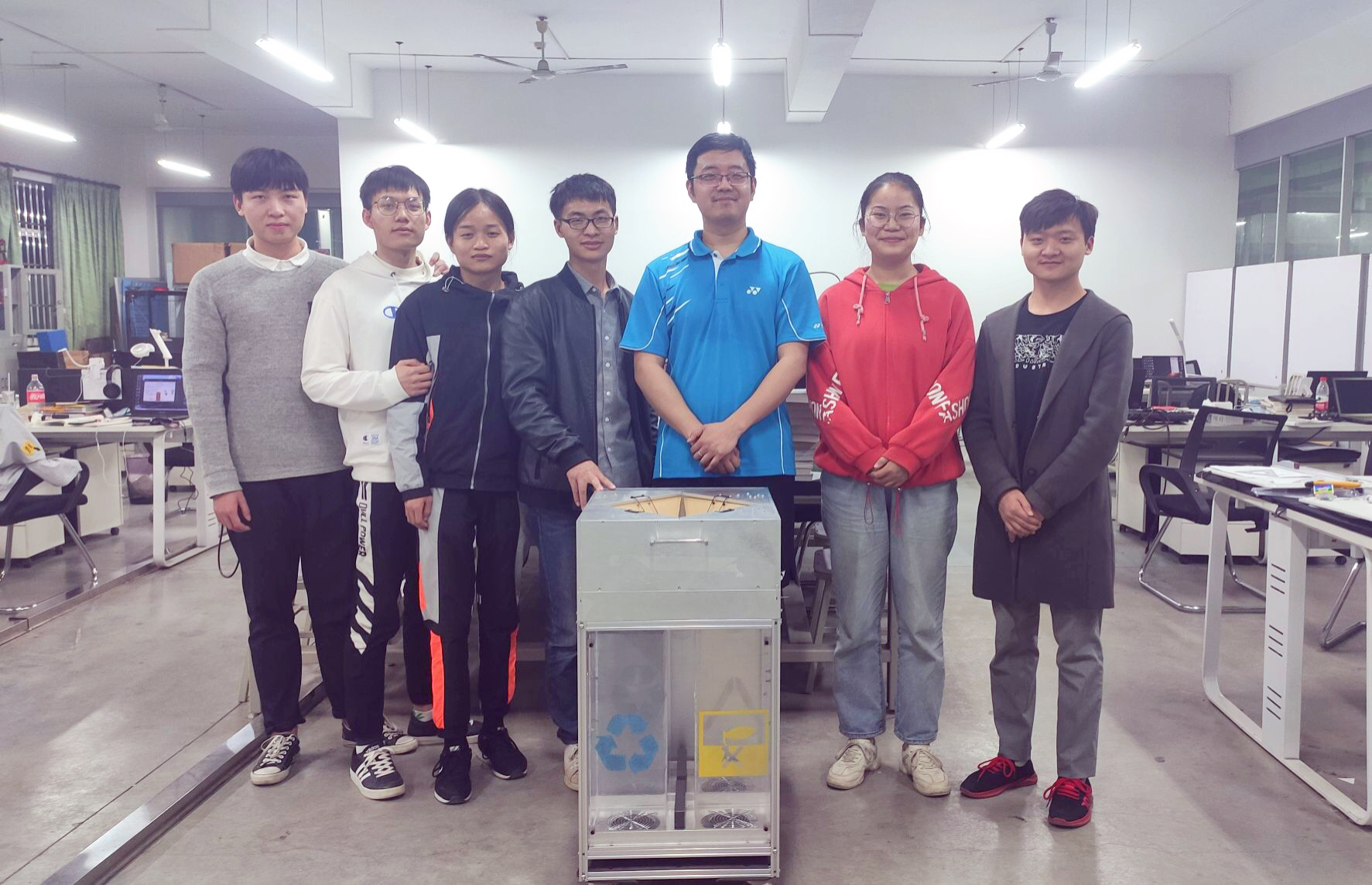 据团队负责人机电工程学院17级车辆工程专业张晶介绍,本次的参赛作品是一种可通过语音识别进行自动分类、自动套装垃圾袋的智能家用垃圾桶。基本结构可分为智能感应开盖、语音识别、自动分类、自动套袋四部分。当垃圾桶上的红外感应器感应到有人靠近时,桶盖自动打开;语音识别模块对文字进行转换,并通过数据库中的数据对比确定垃圾种类;自动分类模块控制对应隔板开合,帮助垃圾落入对应垃圾桶内;自动套袋模块则借助垃圾桶底部安装的风扇产生吸力,将垃圾袋套入桶内。该项目的设计亮点在于对垃圾桶内的四个隔板进行“倒四棱锥”形和曲柄连杆结合设计,使之形成向下斜面,在令桶内空间得到最大化利用的同时避免垃圾在隔板上逗留。谈及创作理念,团队成员周缘灵表示:“国家现在十分重视垃圾分类,不少居民会因为对垃圾性质不熟悉而投错垃圾桶,无形中增加了环卫工人的负担。希望借助智能家用分类垃圾桶帮助大家更好掌握垃圾分类知识,为垃圾分类的推广奉献自己的力量。”