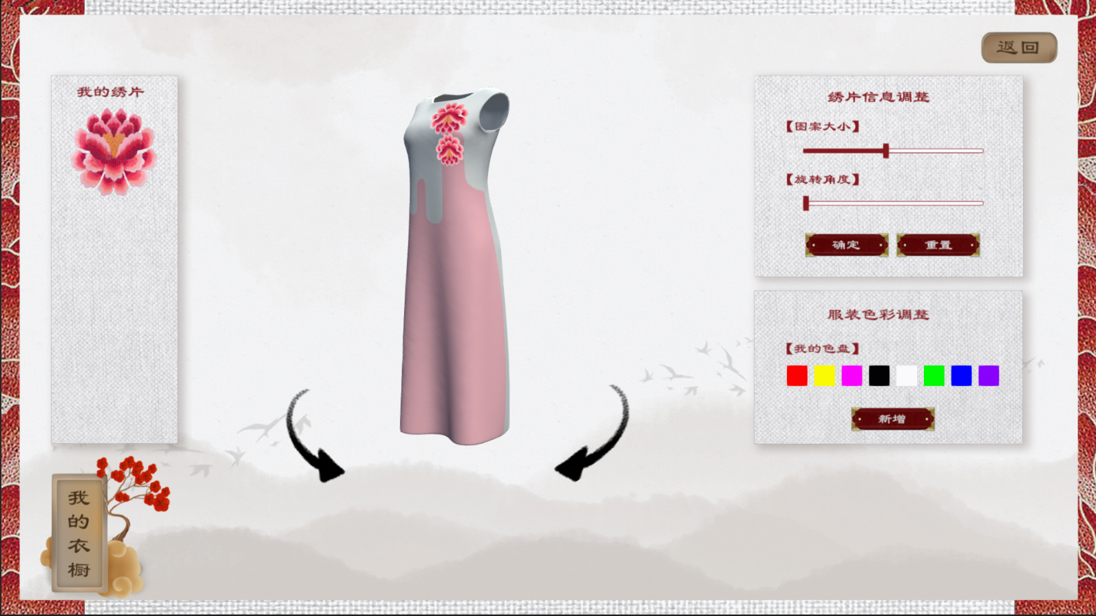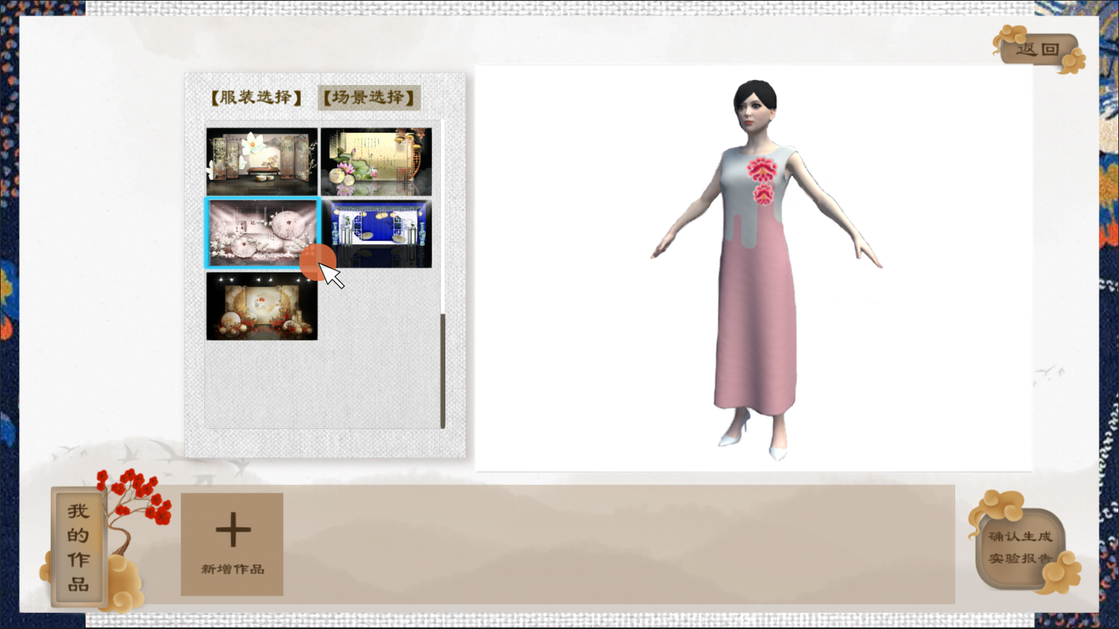 作为国家级非物质文化遗产,汉绣有着千年历史,是湖北省一种地域性绣种,也是一项濒临失传的手工刺绣艺术。我校在积极响应习近平总书记关于传承及创新传统文化号召的同时,开设了全国唯一一门“汉绣”服装相关课程,有效地传承了汉绣文化并培养了专业人才。《汉绣服饰设计虚拟仿真实验》课程中,学生通过观看教学视频学习理论知识,利用模拟实训实现对汉绣针法的掌握,以及完成针法、图案与服装款式的融合。该模拟实验不仅实现了传统教学无法达到的不断试错及修改功能,同时缩短了汉绣周期、减少了一对一教学师资耗损。据了解,真实汉绣需要两个月左右完成的作品,通过该实验40分钟左右可以完成。