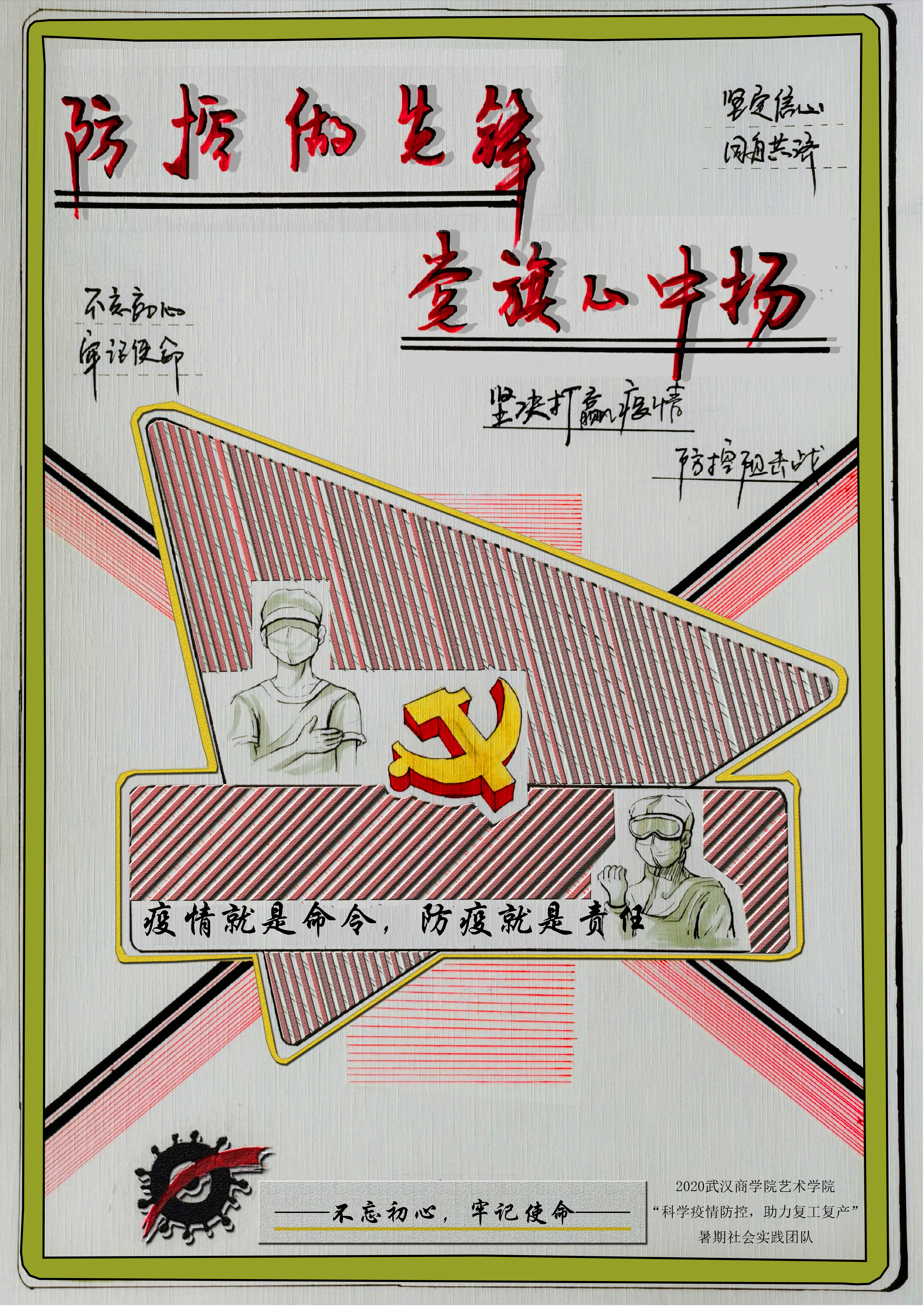 该实践项目由11位学生和李晗、吴昊2名指导老师共同组成,共同助力疫情防控和复工复产。团队成员发挥专业优势,创作系列海报和宣传视频,在企业、社区、学校等地循环播放,意在提高人们疫情防控意识,帮助企业顺利复工复产。通过此次项目,成员们在社会实践中受教育、长才干、做贡献,践行社会主义核心价值观,展现了青年一代有责任心有担当的一面!