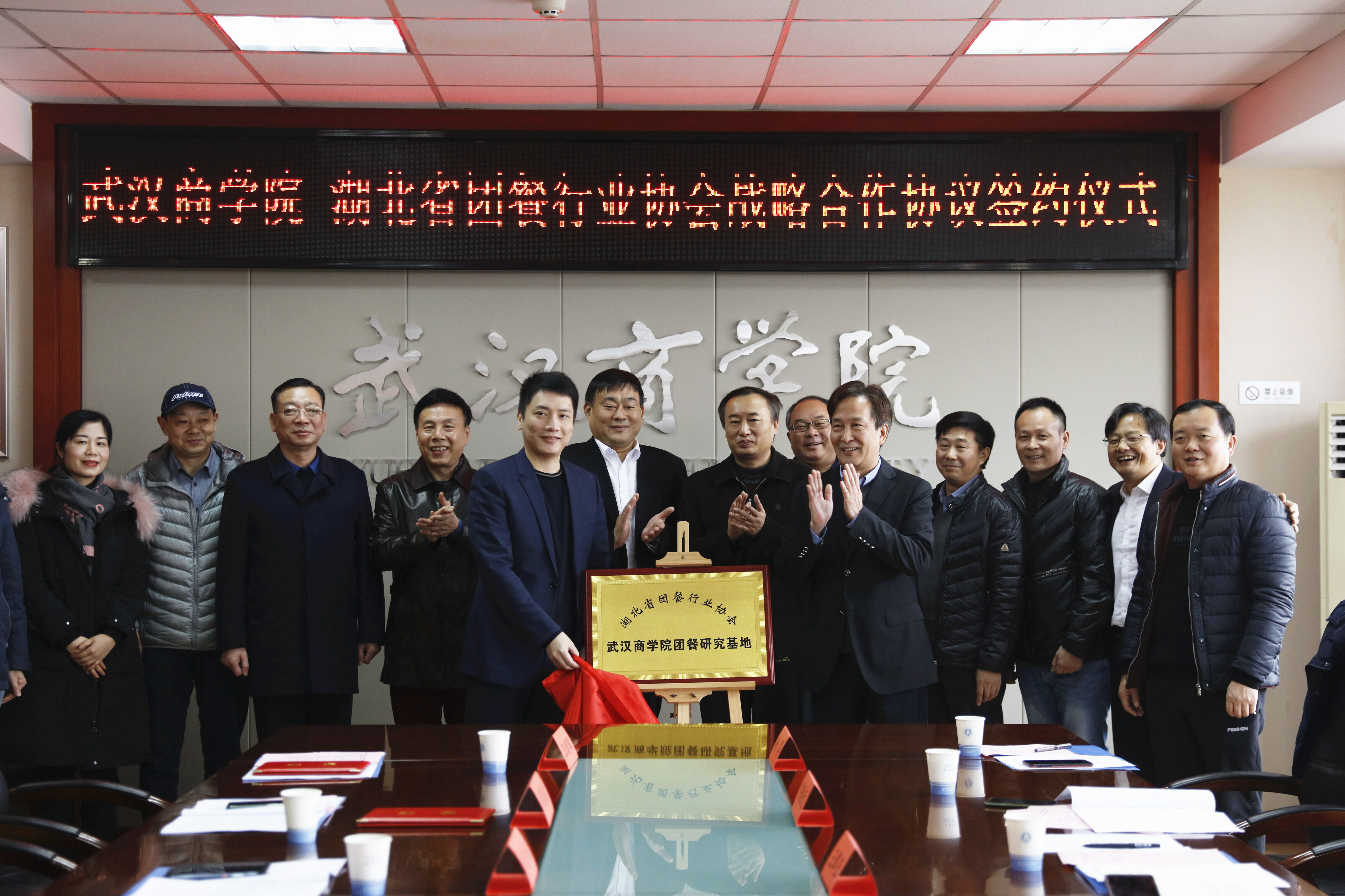 仪式上,副校长王路群代表我校与湖北省团餐行业协会签署战略合作协议,校长王清华、湖北省团餐行业协会会长史铮共同为“团餐研究基地”揭牌。签约双方均希望以平台为依托,通过对团餐行业的针对性调研,整合行业、企业、高校的优势,促进团餐行业的健康发展、提升高校专业建设与人才培养质量。