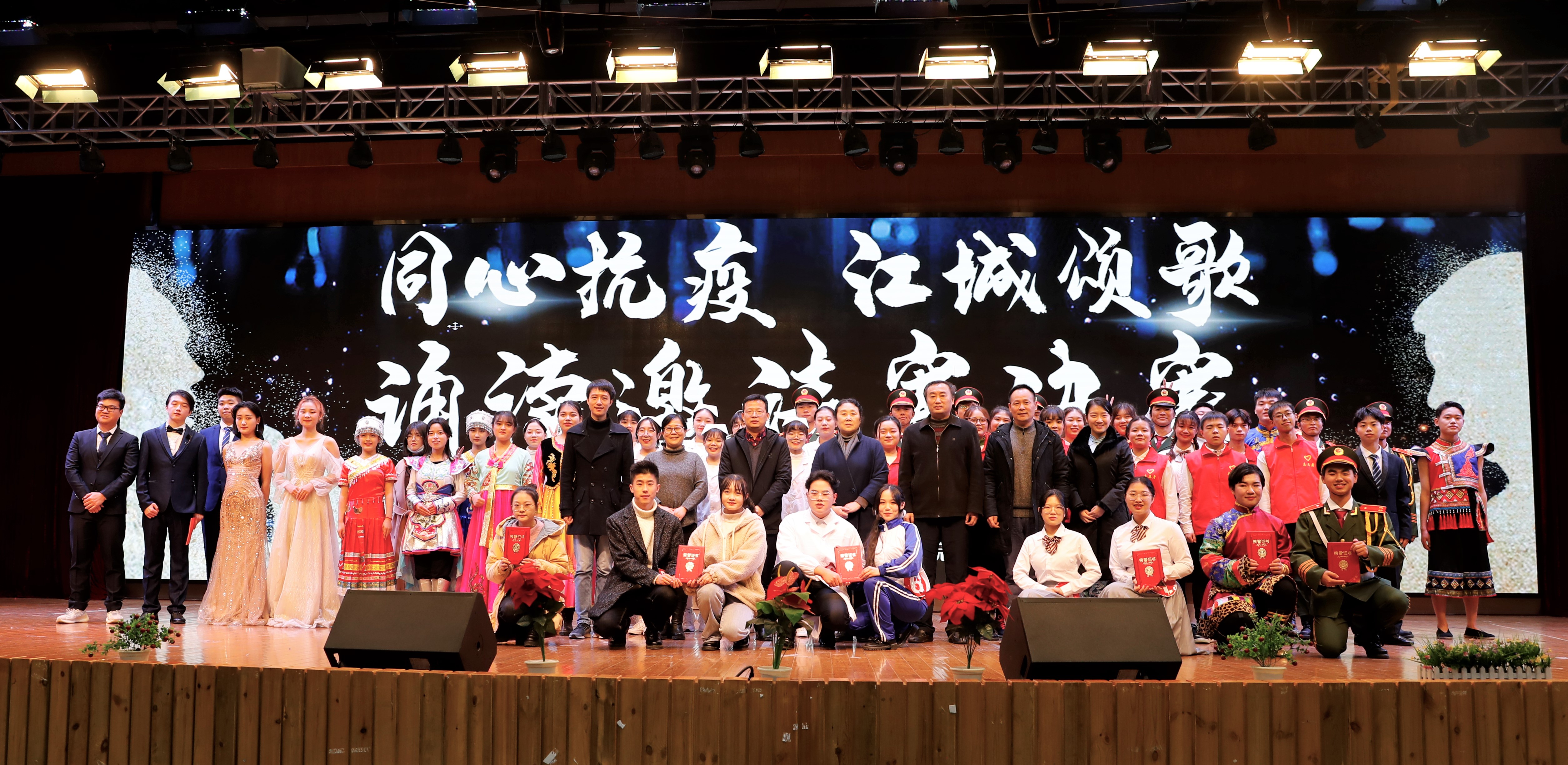 2020年庚子岁首,突如其来的新冠疫情打响了一场没有硝烟的战争,全国人民没有畏惧,众志成城,守望相助,迎难战险,共克时艰,彰显了中国精神坚不可摧的磅礴伟力。“同心抗疫,江城颂歌”主题诵读邀请赛围绕该主题,经过初赛、复赛遴选出六个优秀作品进行决赛比拼。经历激烈的角逐,2020级国际教育学院牛家龙的《晚安,爸爸》获得一等奖;2019旅游管理学院关艺欣和2019级食品科技学院王雪敏的《因为有你》及2020级国际教育学院的穆一帆和2020级艺术学院邓宇婷的《抗疫父女》获得二等奖;2019级外国语学院方佳、刘祎琳的《没有冬天不可逾越》、2020级信息工程学院刘思龙的《致相公,与妻书》及2019经济学院王沙沙的《致逆行而上的中国》获得三等奖。