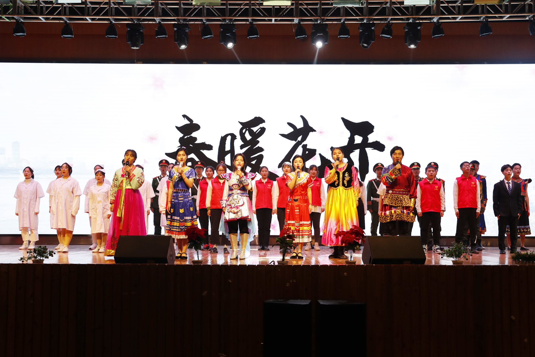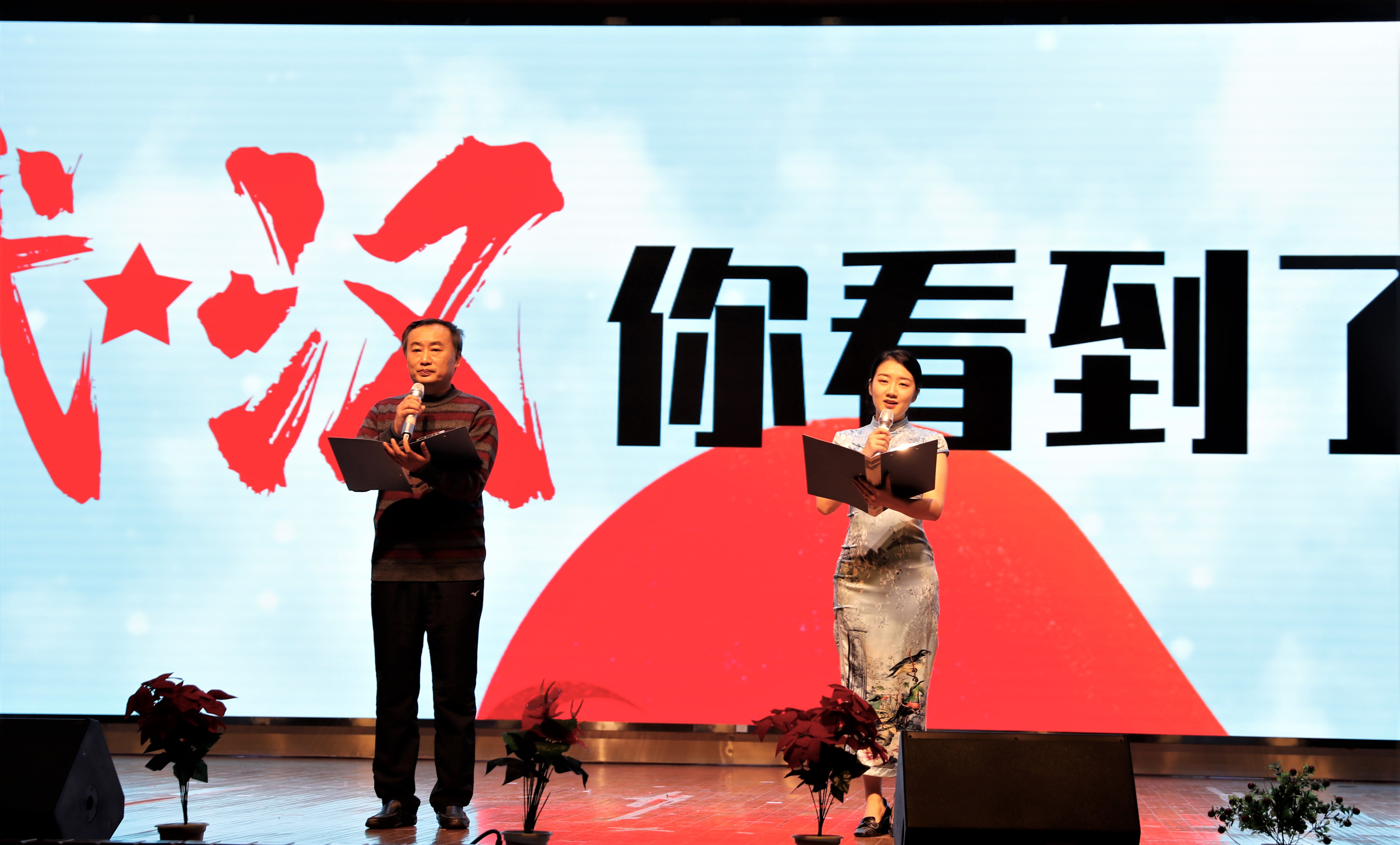 “医者无私,日夜兼程,赴荆楚之绝地,置安危于度外,尽心力而扶危,沥热血以济困。”表演环节中,师生古筝伴奏朗诵《记庚子疫》由教师陈文旋子和2018级工商管理学院的赵金星合作完成,朗诵结束,台下观众掌声激烈,直呼“太精彩了!”之后由湖之韵朗诵艺术团学生团员合诵的《英雄儿女》,更是让大家赞不绝口,现场观众纷纷报以热烈掌声。