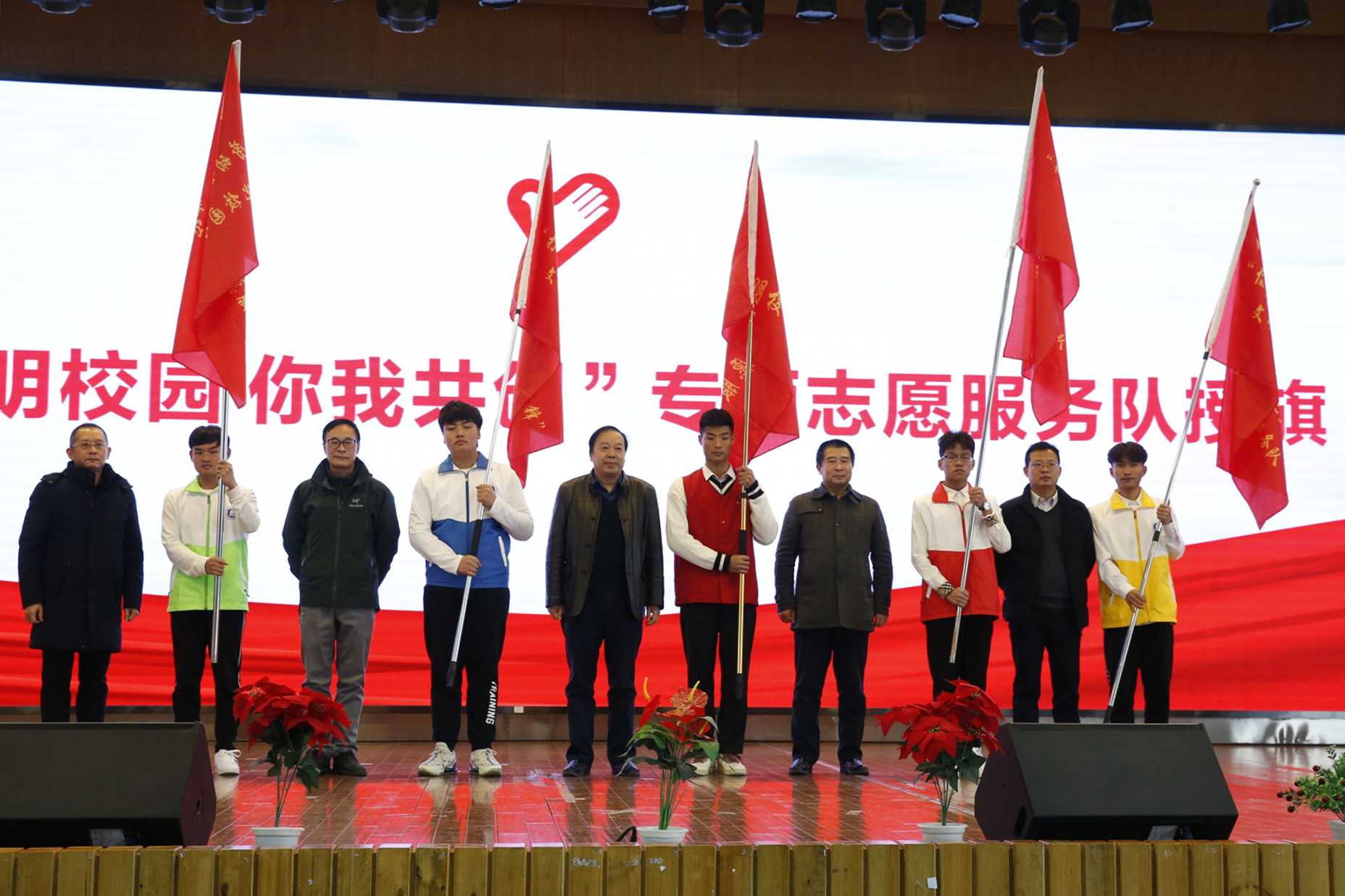 启动仪式在庄严的国歌中拉开帷幕。副校长张石及相关职能部门负责人为专项志愿服务队授旗。青年志愿者协会负责人杨洲对本次专项志愿服务的活动开展形式及基本概况做了详细介绍。“文明校园 你我共创”专项志愿服务队由我校青年志愿者自发成立,共计800人,此次启动仪式成立了文明课堂、文明交通、文明就餐、美化校园四支专项志愿服务队。据了解,文明课堂志愿者通过在各教学楼开展文明引导活动,督促学生养成课堂文明习惯,提升课堂效率和专注度;文明交通专项志愿服务行动旨在引导学生遵守交通规则,保障其人身安全。志愿者会在南北区交通要道间开展活动,杜绝闯红灯、占用机动车道、有轨电车道等不良行为;文明食堂专项志愿者在南北区食堂引导学生自觉排队就餐、厉行节约,践行光盘行动,营造良好的就餐环境,弘扬中华民族勤俭节约的优良传统;美化校园专项志愿服务行动通过课余时间开展清洁校园活动,强化劳动教育、增强学生主人翁意识,营造干净整洁的校园环境。