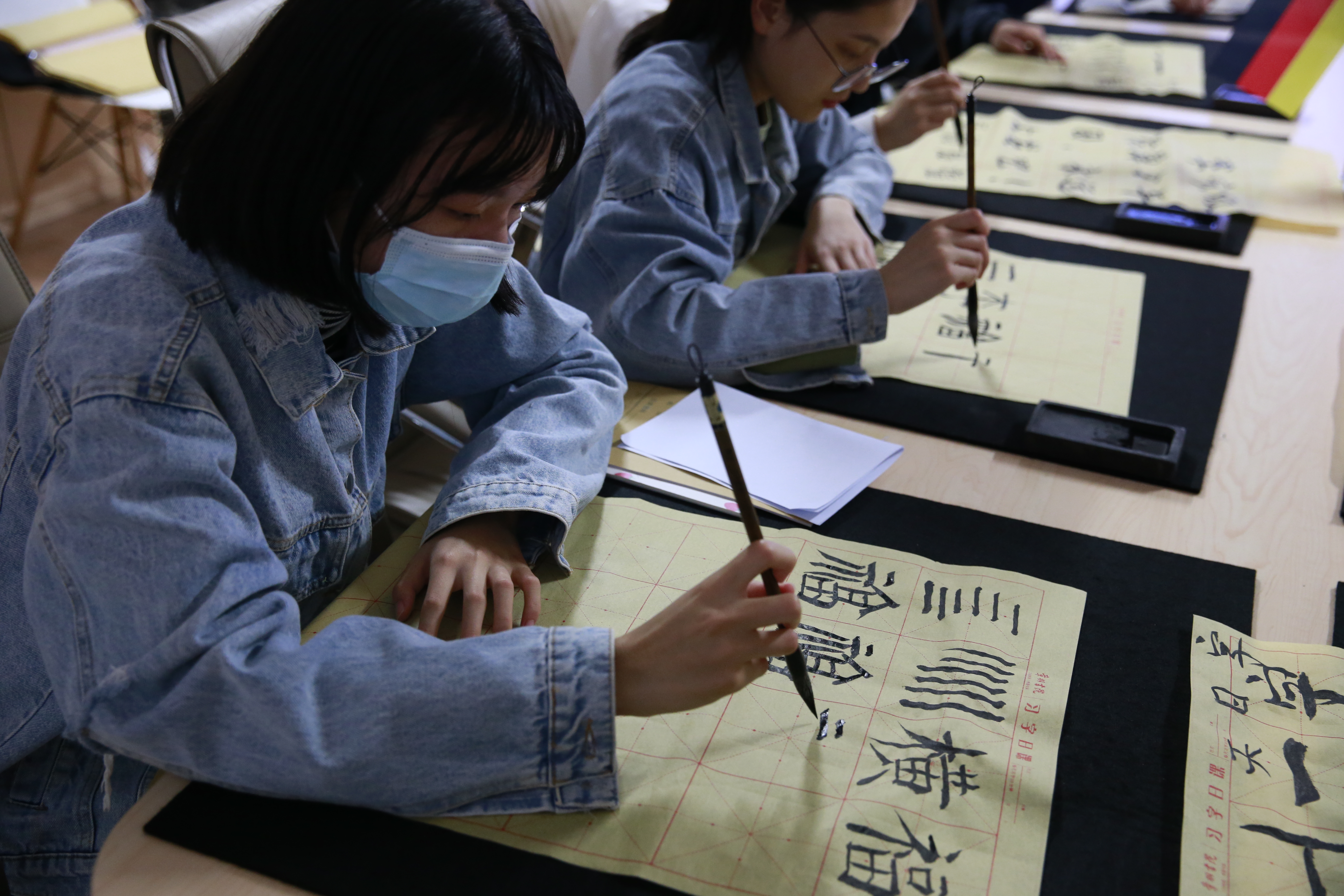 11月7日,bwin必赢中国官网与德国杜伊斯堡埃森大学孔子学院的中外人文交流项目在行政楼319举行。“汉字是世界上最早的文字,中国书法美学是中华美学精神的核心之一”。湖北省硬笔书法协会理事孙沛向中德学生介绍了中国书法的发展历程和独特魅力,介绍完传统的文房四宝后带领大家练习书写“福”字,寄语远在千里外的德国学生也能像福字一样幸福安康、平安喜乐。