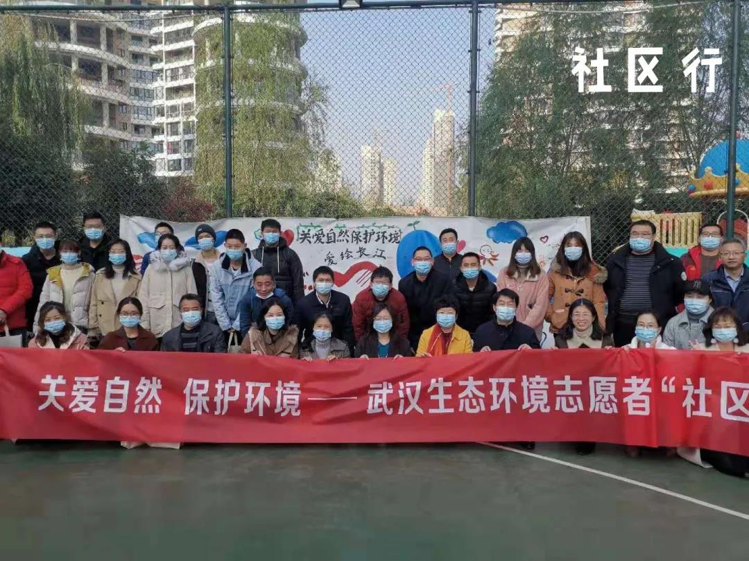 在汉阳区汉博佳园社区,来自武汉市生态环境局志愿服务队、武汉市白鳍豚保护基金会的志愿者们在社会宣传垃圾分类、扮靓垃圾桶、画下心中最美的长江;