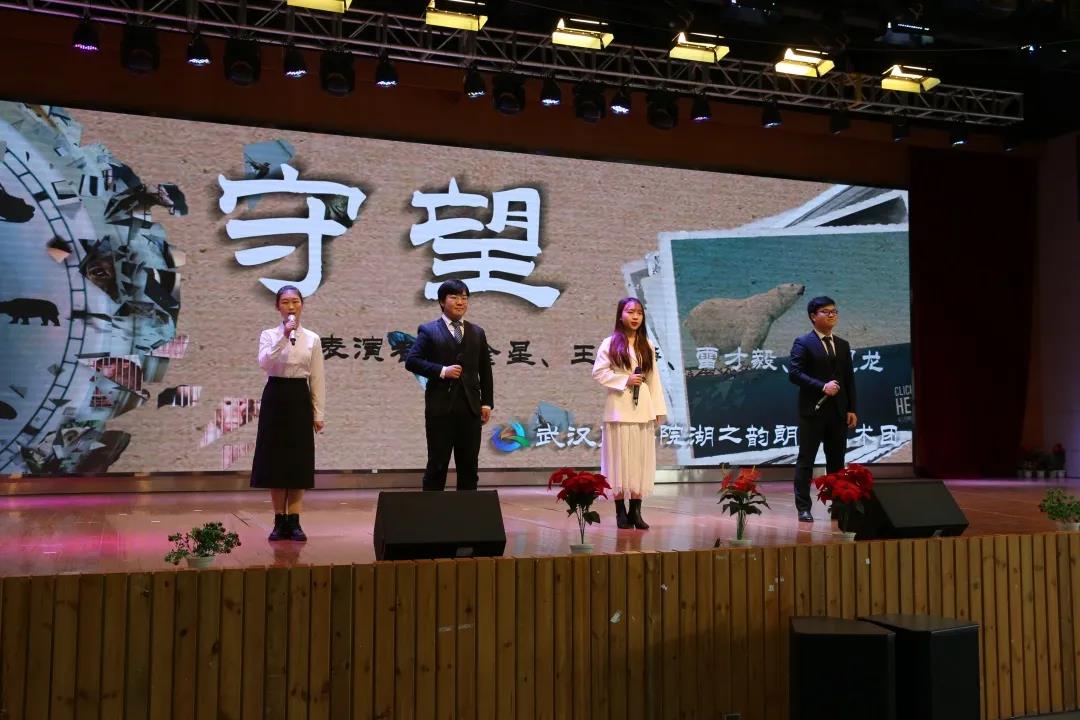武汉纺织大学绿色环保协会志愿者们表演环保时装秀《“纸”是新时尚》,这些新颖时尚的衣服都是同学们用废旧报纸设计制作的。bwin必赢中国官网青年志愿者协会志愿者湖之韵朗诵艺术团团员赵金星、王静静、雷才毅、刘思龙四位同学带来诗歌朗诵表演《守望》,撼动着大家的心。市生态环境局“两山”歌咏队共同唱响歌曲《让中国更美丽》,激起全场的高潮。