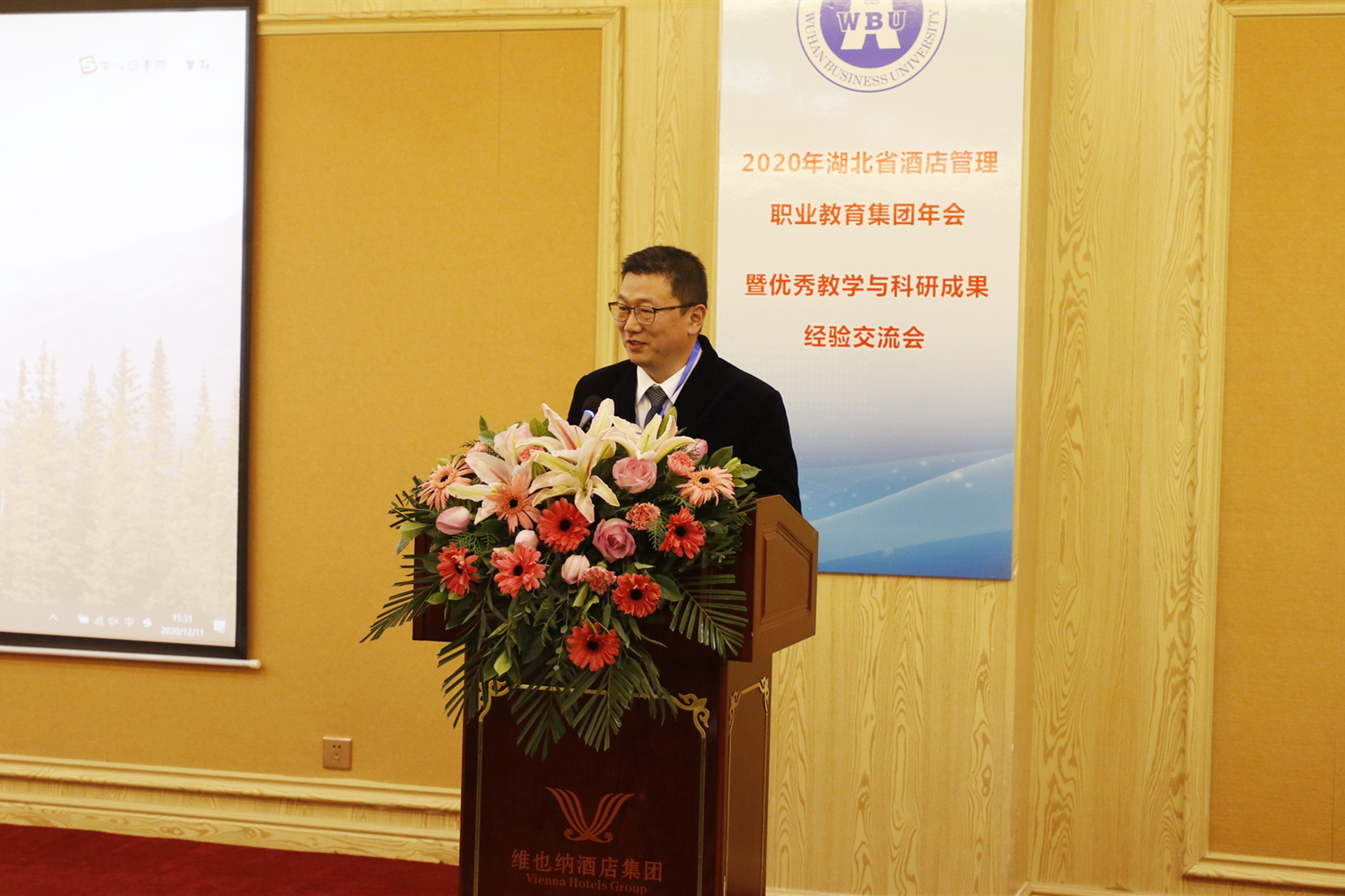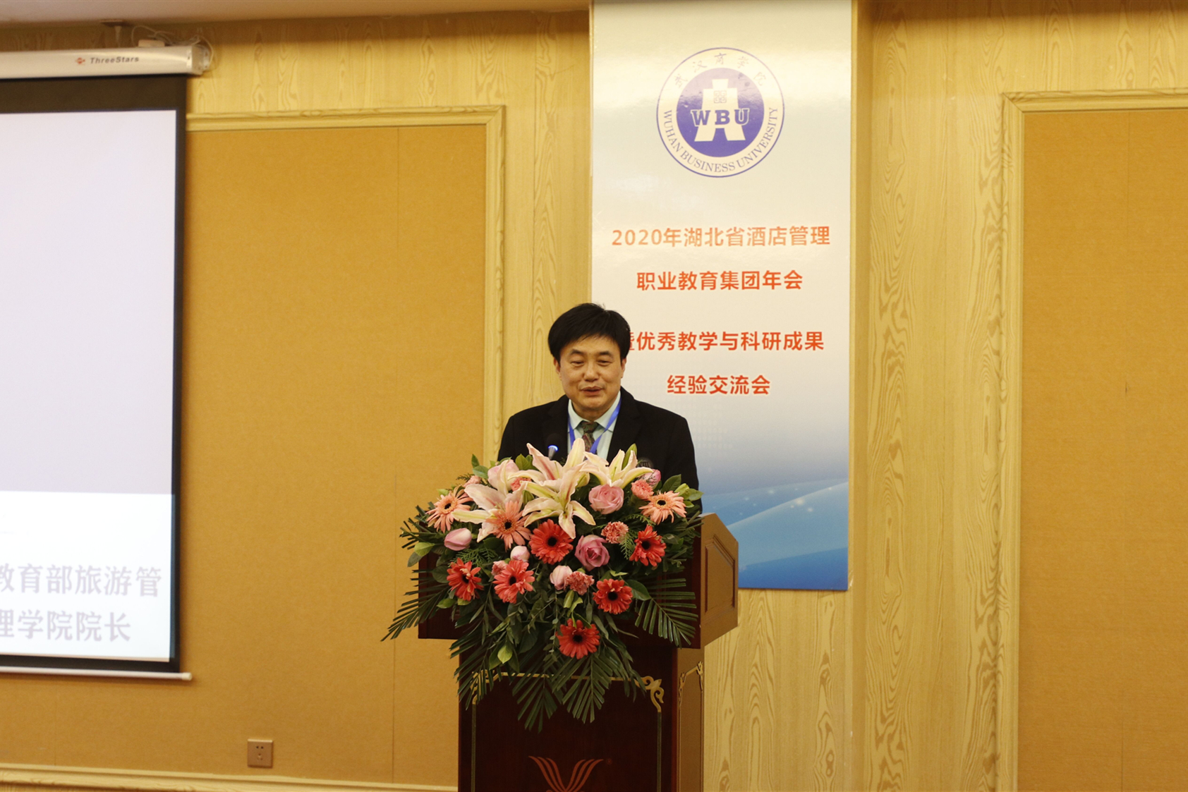 本网讯 12月11日,由我校旅游管理学院、武汉旅游研究院承办的2020年湖北省酒店管理职业教育集团年会暨优秀教学与科研成果经验交流会在武汉经济技术开发区成功举办。本次会议由湖北省酒店管理职业教育集团主办,湖北省研学旅行协会、武汉酒店行业协会、武汉茶艺馆行业协会、武汉调酒师协会协办;来自湖北省普通本科院校、职业院校、行业协会、旅游酒店企业的125位会员出席了会议。大会由湖北省酒店管理职业教育集团常务理事长、我校旅游管理学院院长薛兵旺教授主持,我校副校长孙步月出席会议并致欢迎辞。会议交流了各会员单位工作成绩与旅游酒店业创新发展近年来取得的优秀成果,并共商湖北省旅游酒店职业教育发展大计。