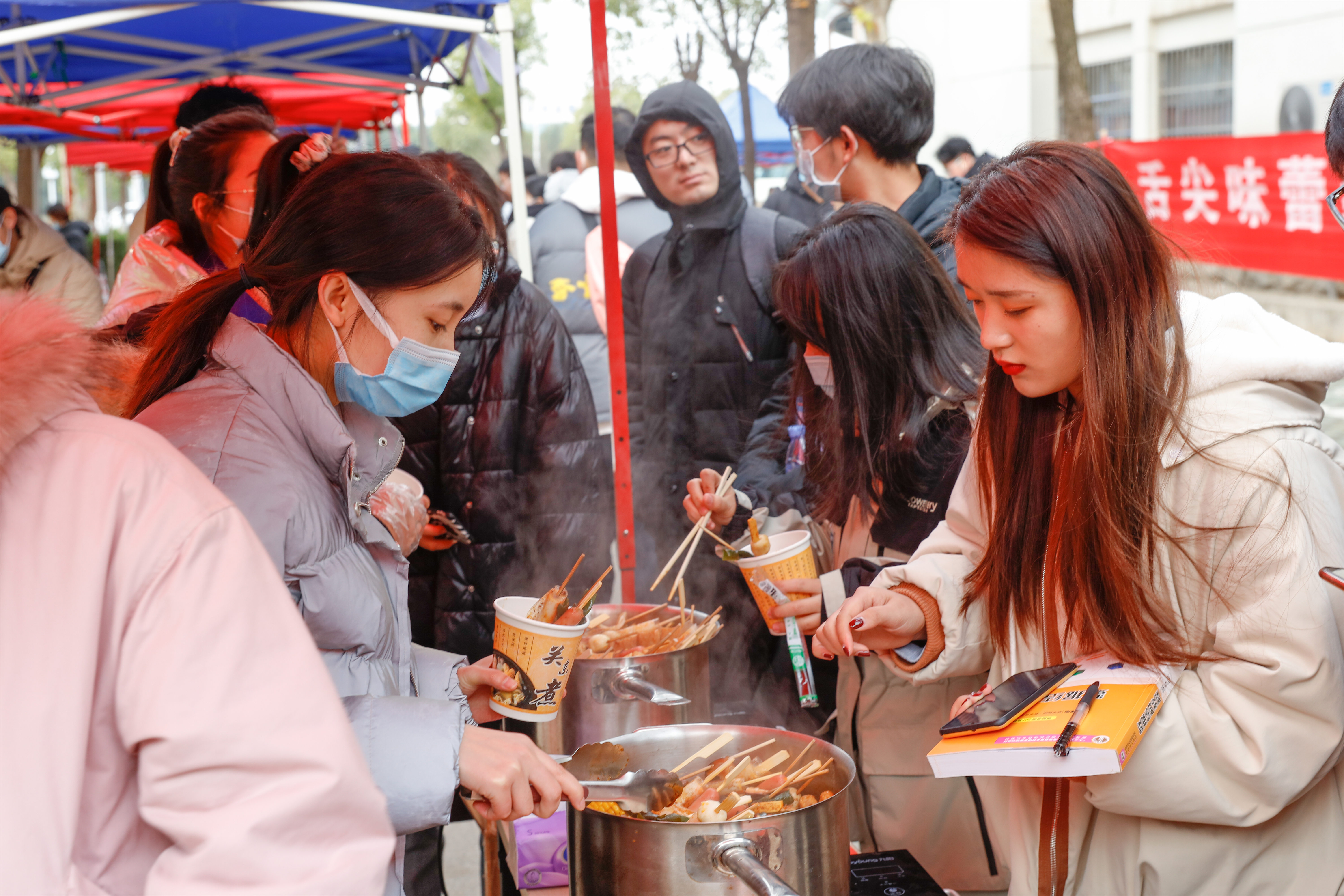 开幕式前,校领导王清华、王丽华现场抽取“幸运锦鲤”。据了解,“锦鲤”可一次品尝本次美食节的28道菜品,尽享美食盛宴。2019级食品科技学院貌弈景成为幸运锦鲤。“今天真的太幸运了。我想把获得的美食分享给同学们,让大家在寒冷的冬天一起品尝美味,传递温暖。”众多到场领导、师生也一起在美食节上品尝美食,感受冬天的温暖。根据活动策划,本次美食节共分为教科研团队菜品展示区、学生菜品售卖区、技能展示区和学生作品展示区四个展区。