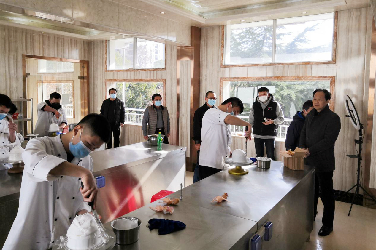 本网讯 1月14日,武汉市汉阳区退役军人事务局副局长高俊辉、退役军人服务中心主任李良安一行四人来我校继续教育学院调研指导工作,餐饮培训中心负责人及相关工作人员陪同。