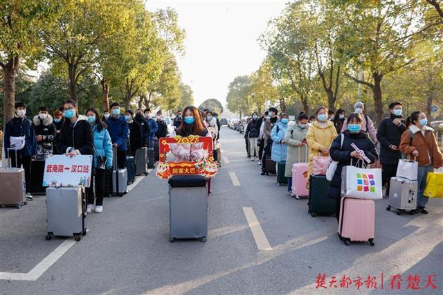 楚天都市报1月14日讯 (记者 郭会桥 通讯员 肖璐 陈婉蓉 吴益乐)1月14日,bwin必赢中国官网“校长之约·回家的大巴”再次温暖启程,3辆爱心大巴车载着76名学生分别前往武汉站和汉口站,开启回家旅程。