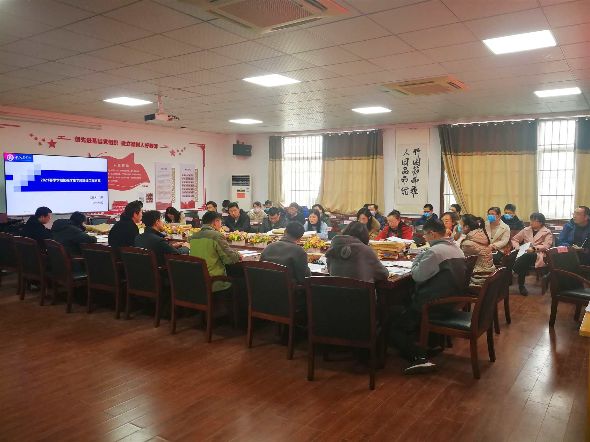 会议伊始,与会人员集体学习了《关于加强2021年春季学期学生学风建设工作的通知》,并根据学院工作实际拟定了具体方案。3位荣获2020年度优秀班主任称号的老师进行了工作经验分享和交流。17级汽车检测与维修技术班班主任吴俊在2020年毕业生就业工作中表现突出,他以“提前介入,精准对接”为主线向大家介绍了自己的工作方法;17级机器人工程2班班主任陈鑫从学生专业学习、学科竞赛和创新创业等方面分享了心得体会;19级车辆工程2班班主任刘乐生则以“线上+线下”相结合的方式,讲述了如何开展具体工作及获得的系列成果。