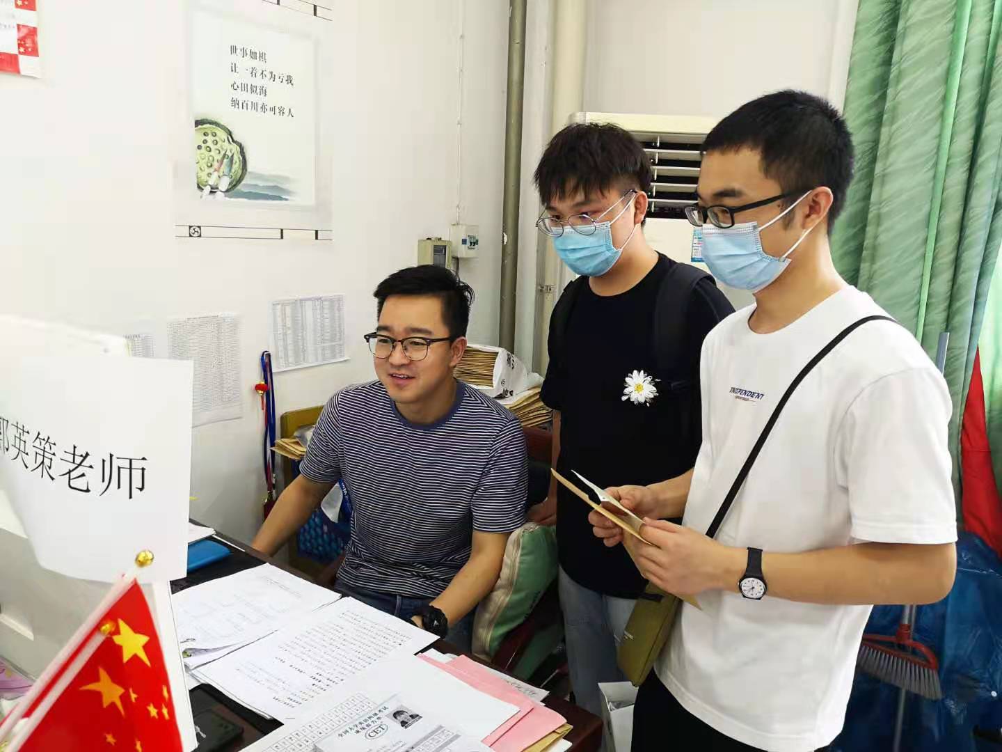 2020年,新冠肺炎疫情爆发,毕业生普遍存在焦躁不安的情绪。郭英策一边利用网络安抚学生,一边积极配合学校、学院为毕业生找寻更多的就业机会,提高就业机会。最终,郭英策所带的班级里考研上岸率高,找工作的学生不少都拿到了中职院校、大型国企和当地知名企业的offer。在2020届毕业生返校办理离校手续时,不少学生都主动提出和郭英策拍照再走,感谢辅导员多年以来的帮助与关注。
