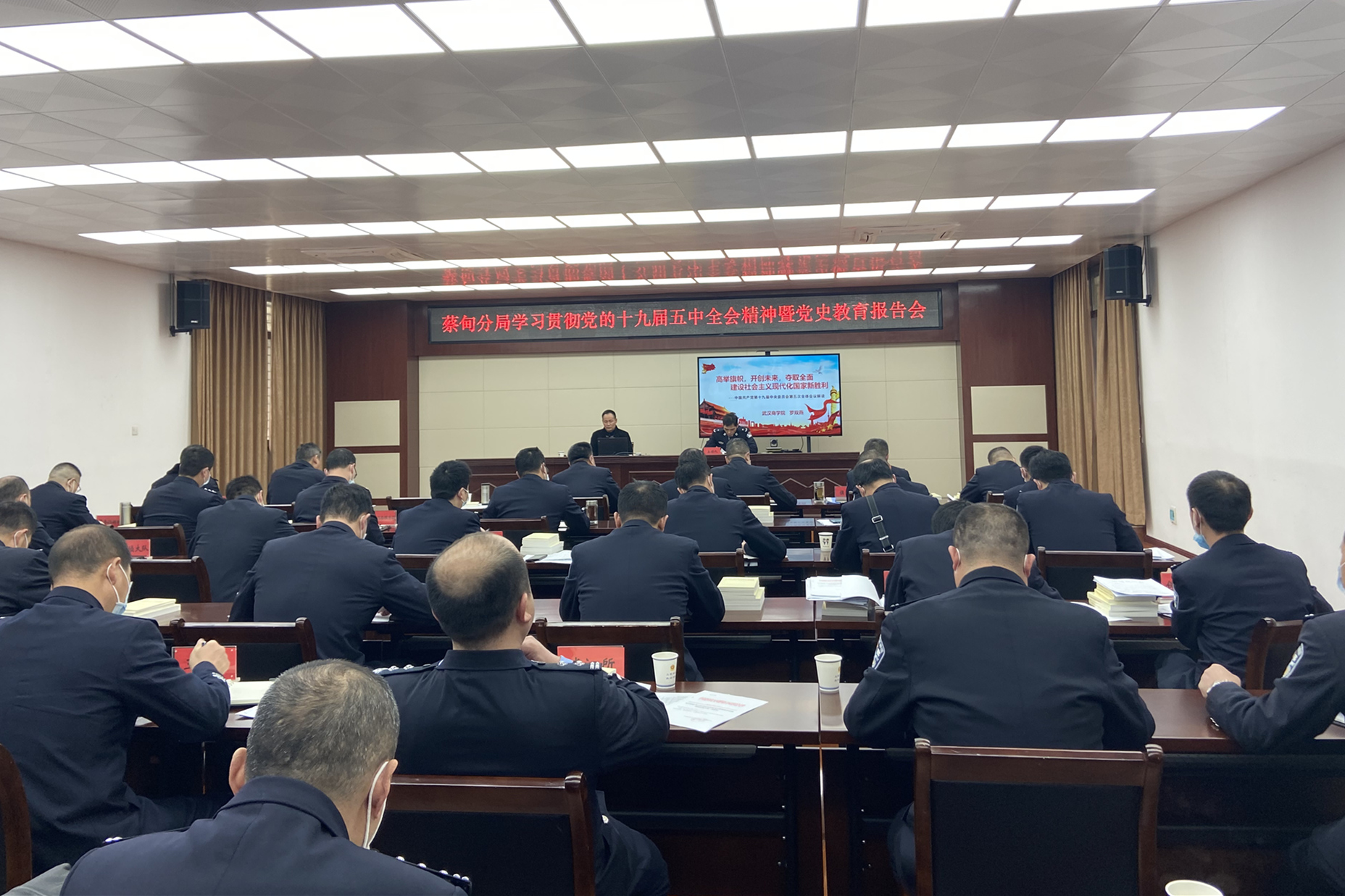 本网讯 3月12日下午,蔡甸区公安分局举行学习党的十九届五中全会精神宣讲报告会。我校教务处长、武汉市委讲师团成员罗双燕应邀作宣讲报告。蔡甸区区委常委、区公安局长李坚及所属单位负责人50余人听取了宣讲报告,蔡甸区公安局政委蔡菁主持报告会。