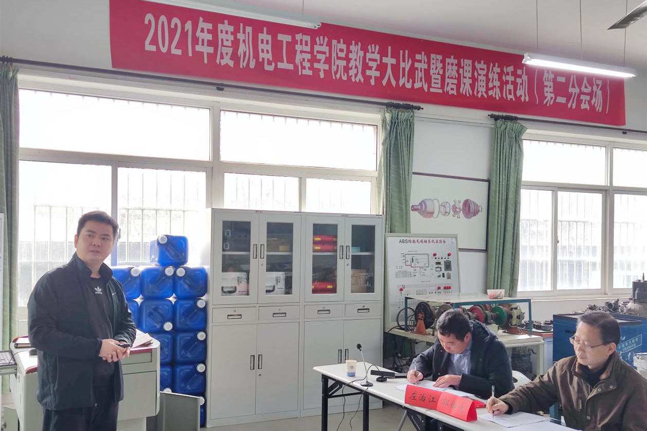 本网讯 为全面提升教师教育教学水平,引导教师热爱教学、研究教学,进一步提高课堂质量,打造金课。机电工程学院组织开展了“2021年春季教学大比武暨磨课演练”系列活动。本轮活动共分理论课说课、理论课讲课以及实验课讲课三个部分组成。3月13日,该院举办了理论课说课演练,来自武汉科技大学、江汉大学等高校6名教学经验丰富的专家莅临三个分会场现场指导。本次演练采取线上与线下相结合的方式开展,机电工程学院全体专任教师和实验教师参加磨课演练活动。