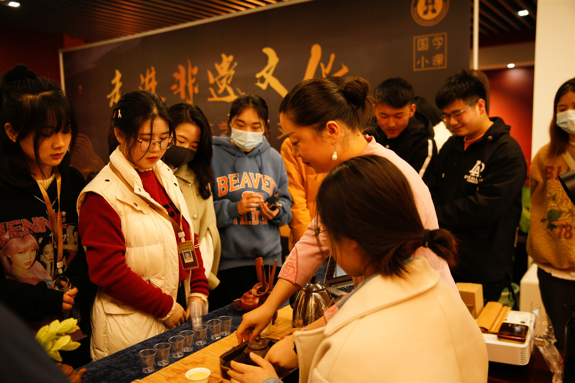 左手把盏,右手持壶,浅黄色的茶水从壶中缓缓流出,茶香四溢。主讲人双手端起杯托,面向一旁听讲的学生说:“这就是泡一壶茶的主要步骤,大家看清楚了吗?”3月11日晚,bwin必赢中国官网特邀国家高级茶艺师、评茶员王钧熎讲授主题为“非遗紫砂陶制作技艺及茶文化”的国学小课。