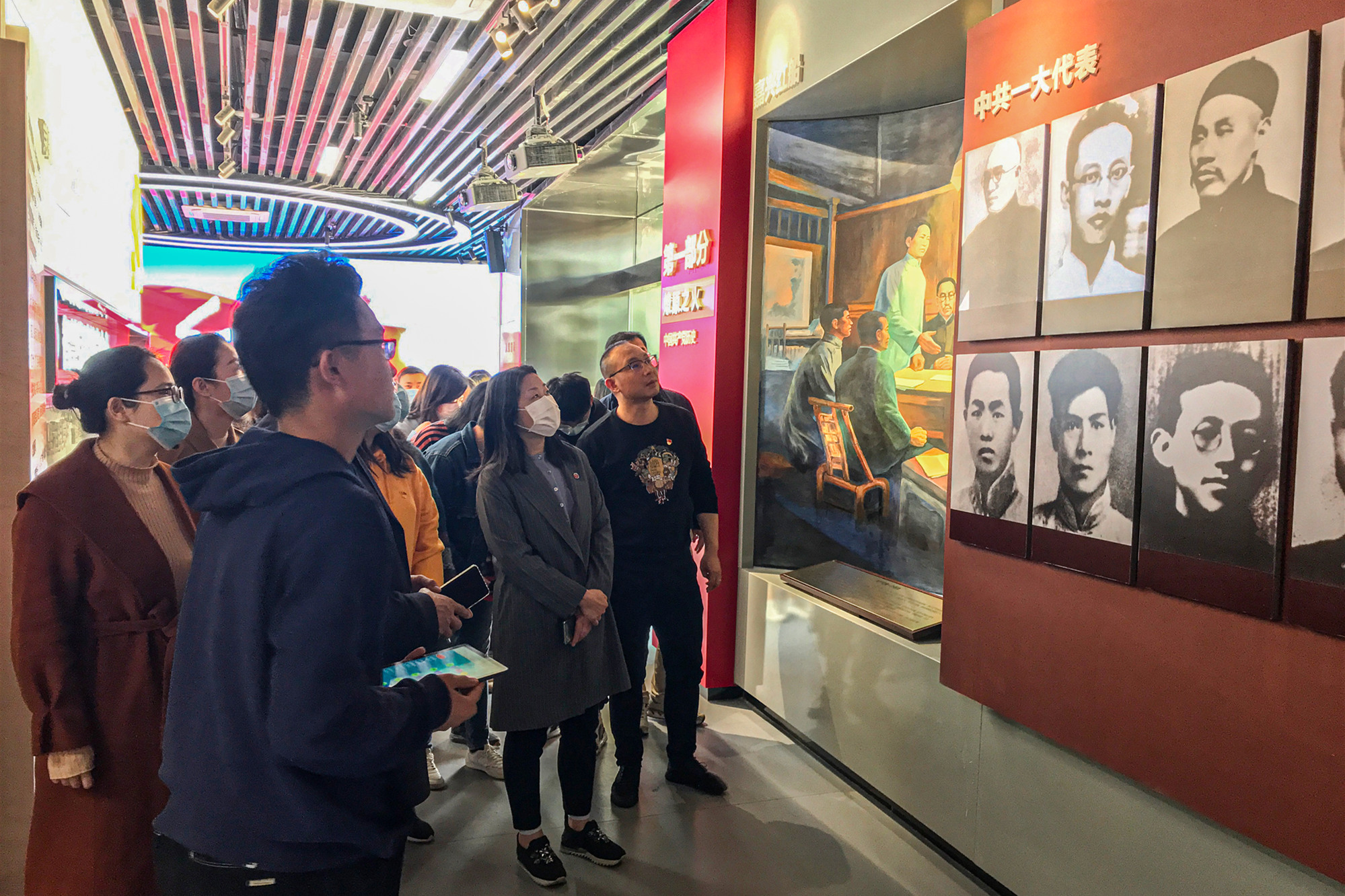 会前,全体人员跟随讲解员的脚步深入了解智慧党建教育中心展馆。展馆从“燎原之火——中共历史”“红色基因——新时代高校党建新征程”“立德树人——bwin必赢中国官网党建工作”“永远在路上”四个方面展示了学校强化政治引导、加强基层党建工作品牌建设、打造武商院特色基层党建品牌的党史文化内容。