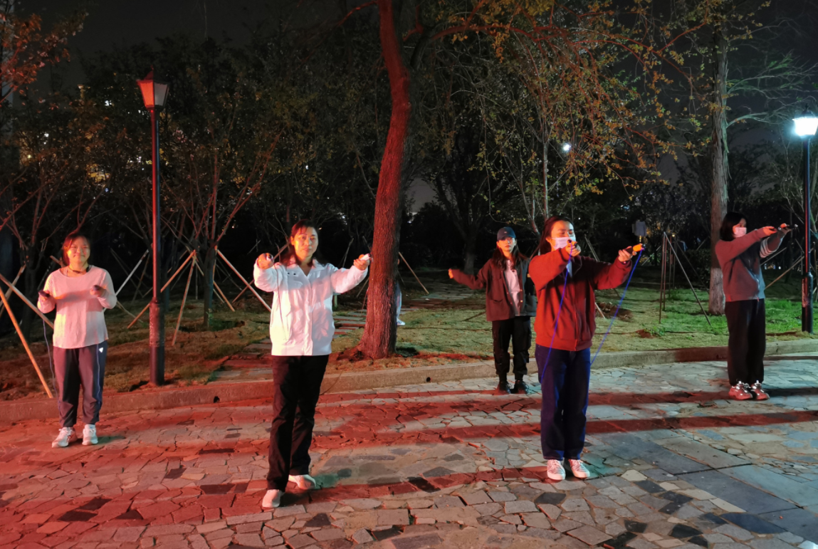 除了跳绳,肖艳红还在学习广场舞,打算拓展锻炼形式。“大学生就是国家未来的栋梁,身体好是最要紧的。”她想通过“晚锻炼”的方式,让学生们暂时放下书本,放松身体,用更好的状态投入学习中。