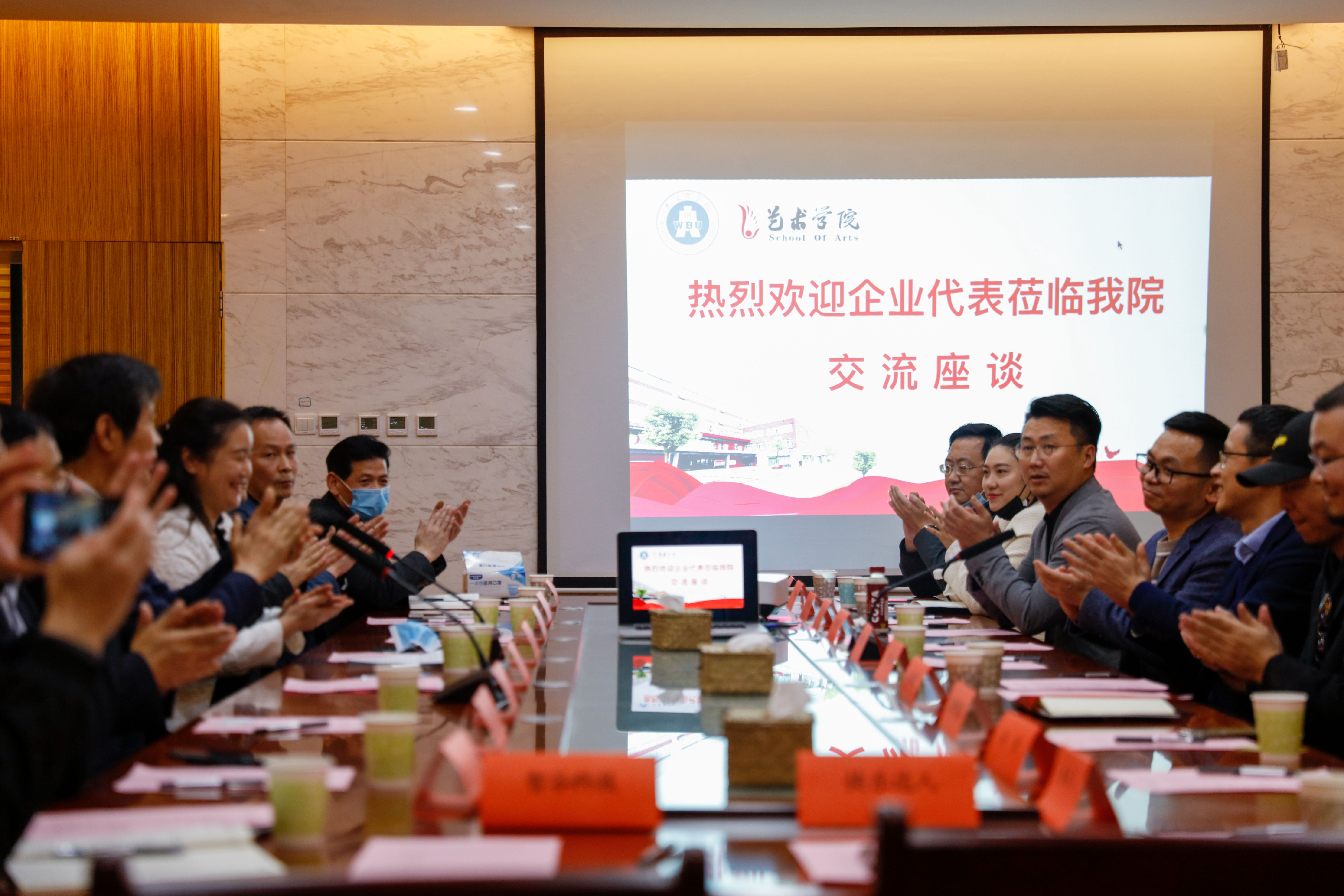 参会企业代表对行业发展和产教融合进行了热烈探讨,对我校人才培养理念表示高度赞同。各代表就企业人才需求、行业存在的问题、行业未来发展趋势、后疫情时代下艺术领域的发展与人才培养等话题分别发言。尤其是在高素质、应用型人才培养路径,企业如何参与专业教学,学校如何为企业提供智力支持,如何合作开办产业学院,学生实习、就业的新探索等方面提出了宝贵的意见和建议,希望能与我校携手共进,扩展合作的空间和领域。各企业代表对艺术学院提供的交流合作平台表示感谢,希望能够与学校保持长期合作,共商育人大计、共担育人责任、共享合作成果,实现合作主体互惠互利、合作共赢。各企业代表与相关专业教师进行了单独的交流互动,就双方关心的问题展开更深层次的探讨。
