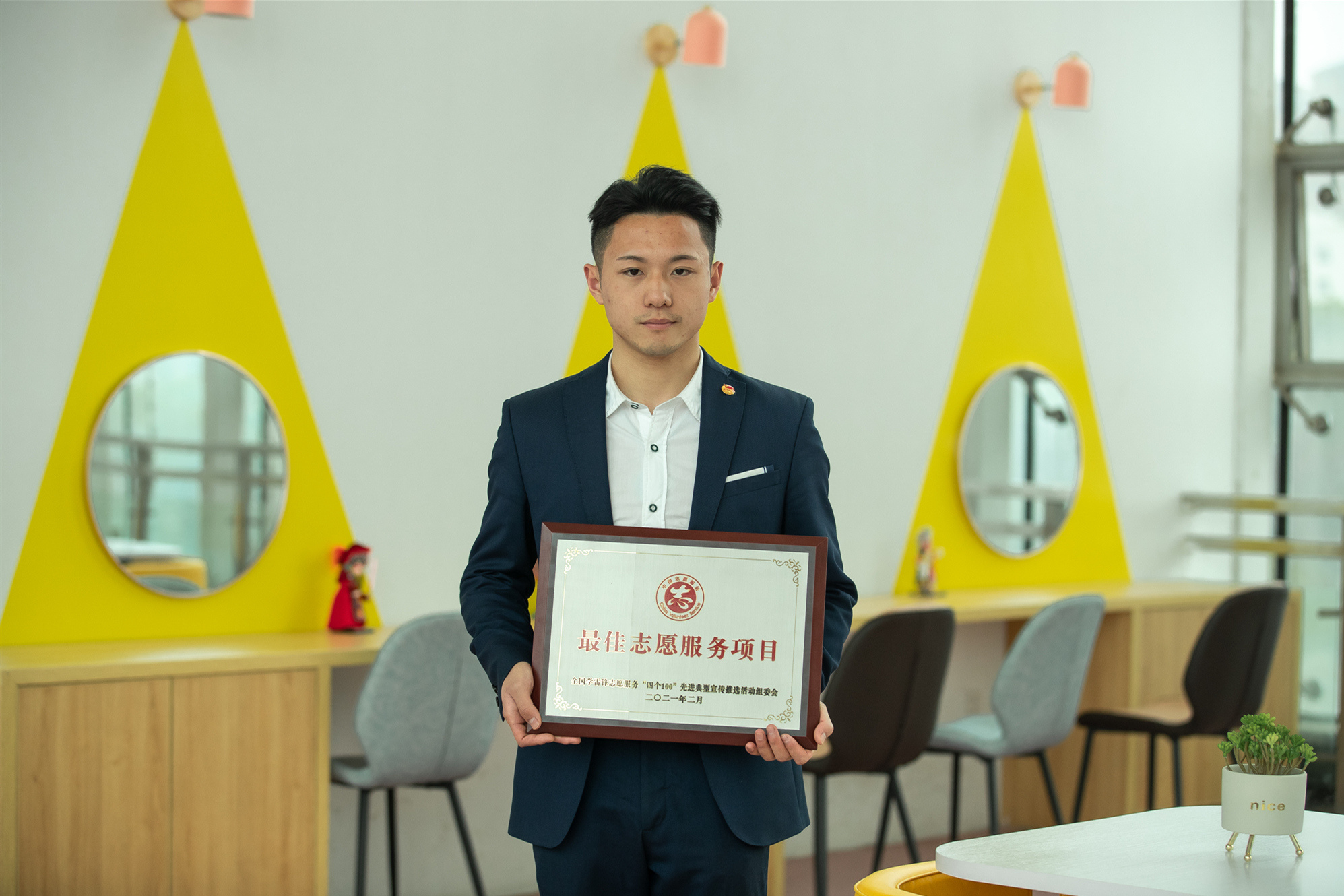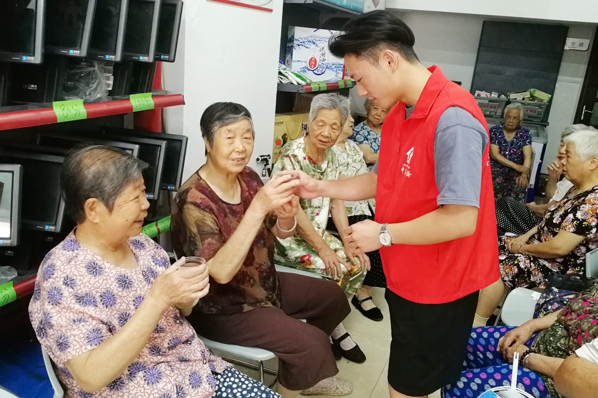 蔡文豪在社区为老人做志愿服务,已有超500人加入志愿者队伍。