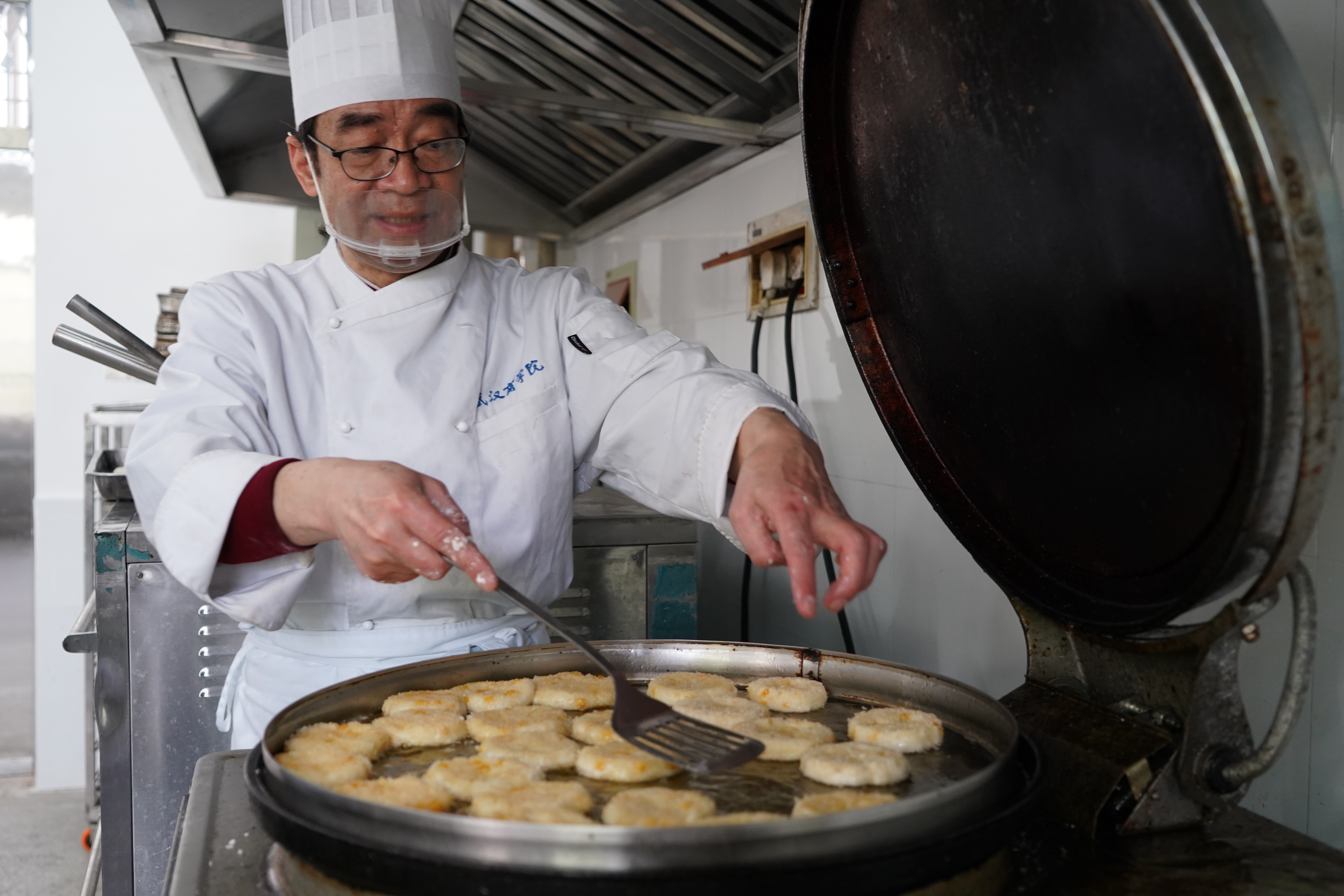 本网讯 为让学生更加了解茶文化,学习茶点制作。4月12日,由我校食品科技学院主办、美食与营养协会承办的茶点制作活动在南四104实训室举行。活动以“茗香四里,食慰武商”为主题,以中国的传统茶文化为载体,中国烹饪大师方元法现场教学中国传统茶点小吃制作方法。