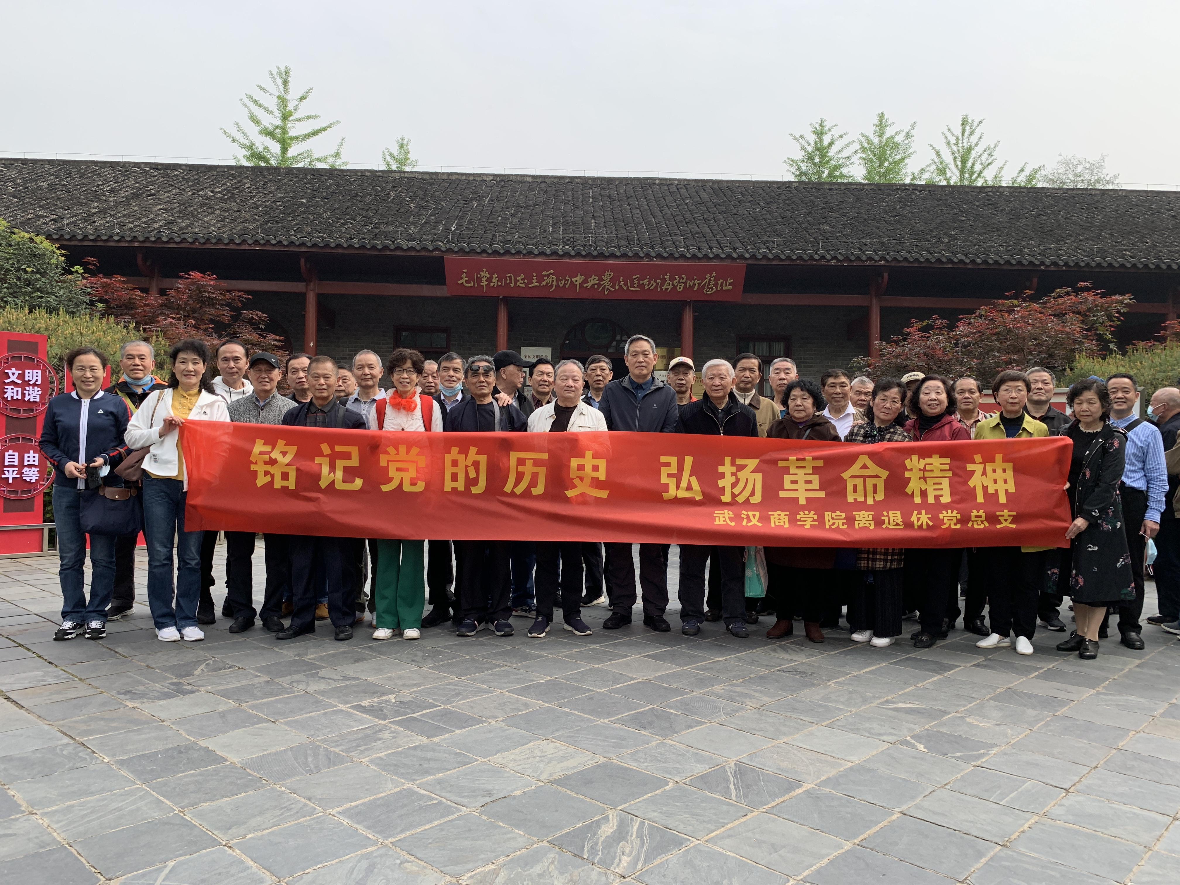 本网讯 为纪念中国共产党建党100周年,离退休党总支按照《2021年庆祝中国共产党成立100周年活动安排》的具体要求。4月16日上午,离退休一、五党支部一行36人赴武昌中央农民运动讲习所、毛泽东旧居,开展“铭记党的历史 弘扬革命精神”为主题的参观学习教育活动。