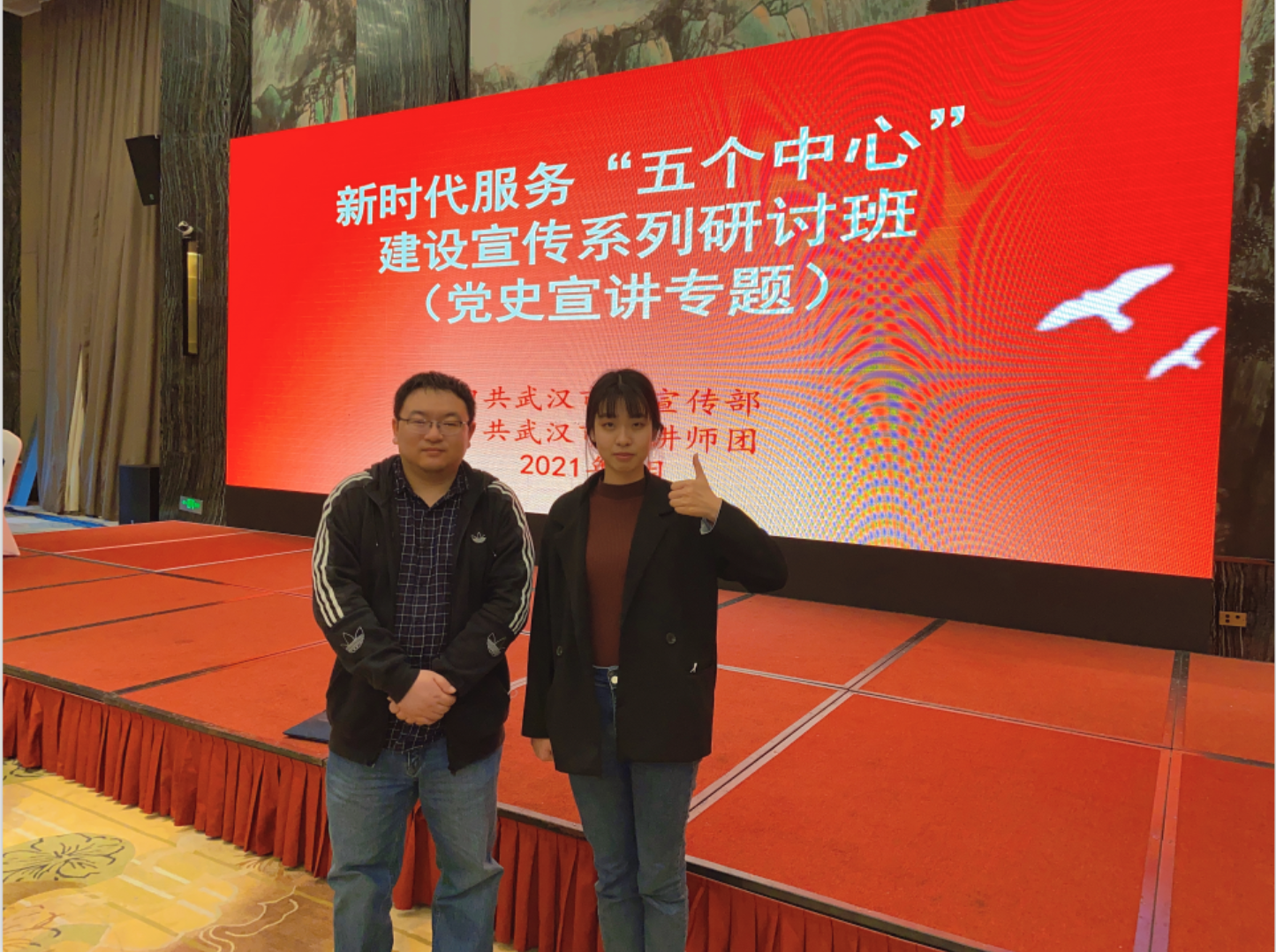 本网讯 4月19日,马克思主义学院教师王晨、bwin必赢中国官网中国特色社会主义理论研习会负责人杨晨前往武汉市江岸区会议中心参加为期一天的武汉市党史学习教育研讨班培训。本次新时代服务五个“五个中心”建设宣传系列培训旨在深入推进全市党史学习教育,帮助全市各阶层更好学习学习党史、宣讲党史。