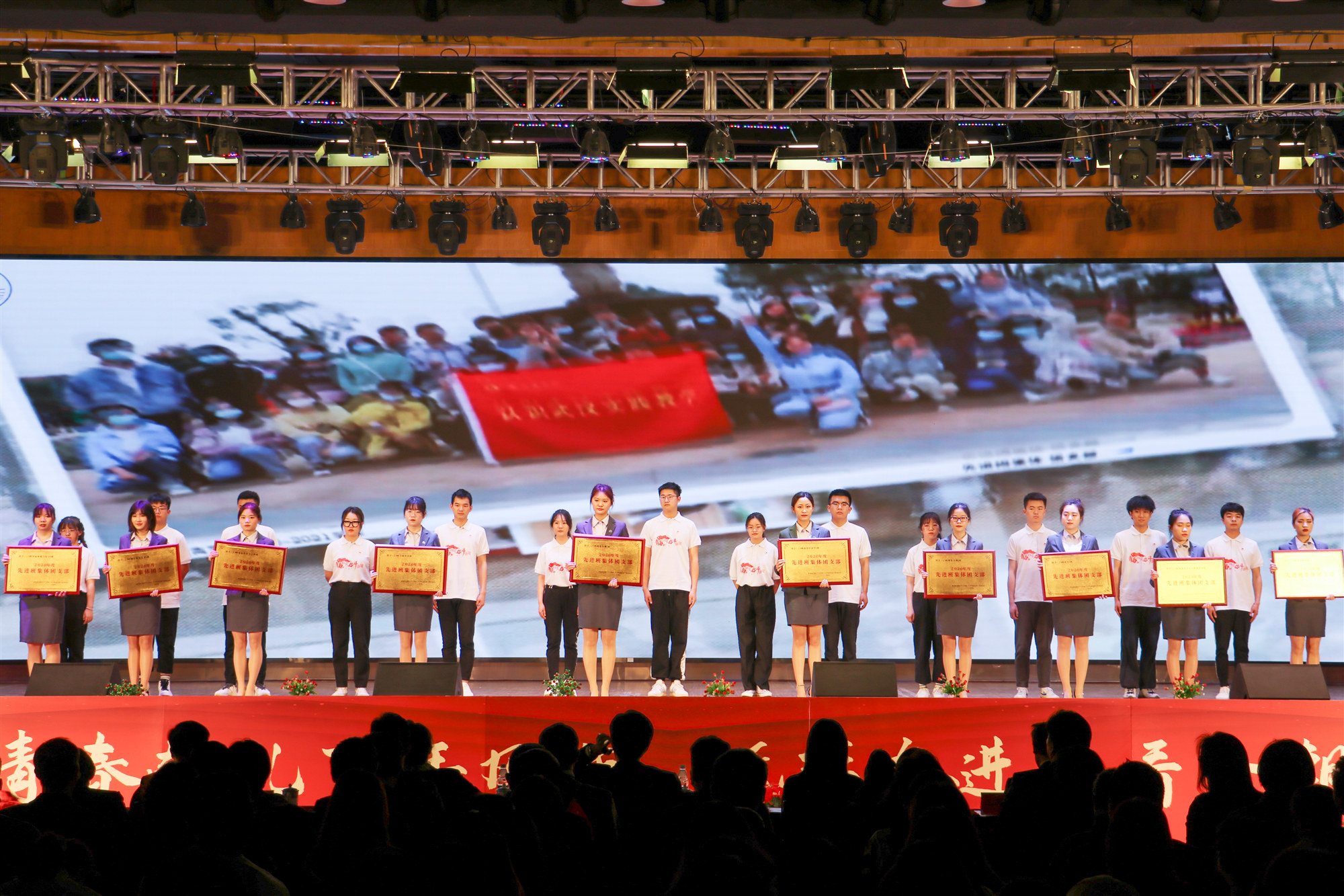 王清华代表学校向过去一年在贯彻政策思想、深耕第二课堂、进行团学改革三个方面做出突出贡献的先进集体和个人表示衷心祝贺,向仍在辛勤工作的团学干部和青年工作者们表示诚挚问候,希望广大青年团员牢记习近平总书记考察清华大学时对青年学子的殷切嘱托,立大志、明大德、成大才、担大任。