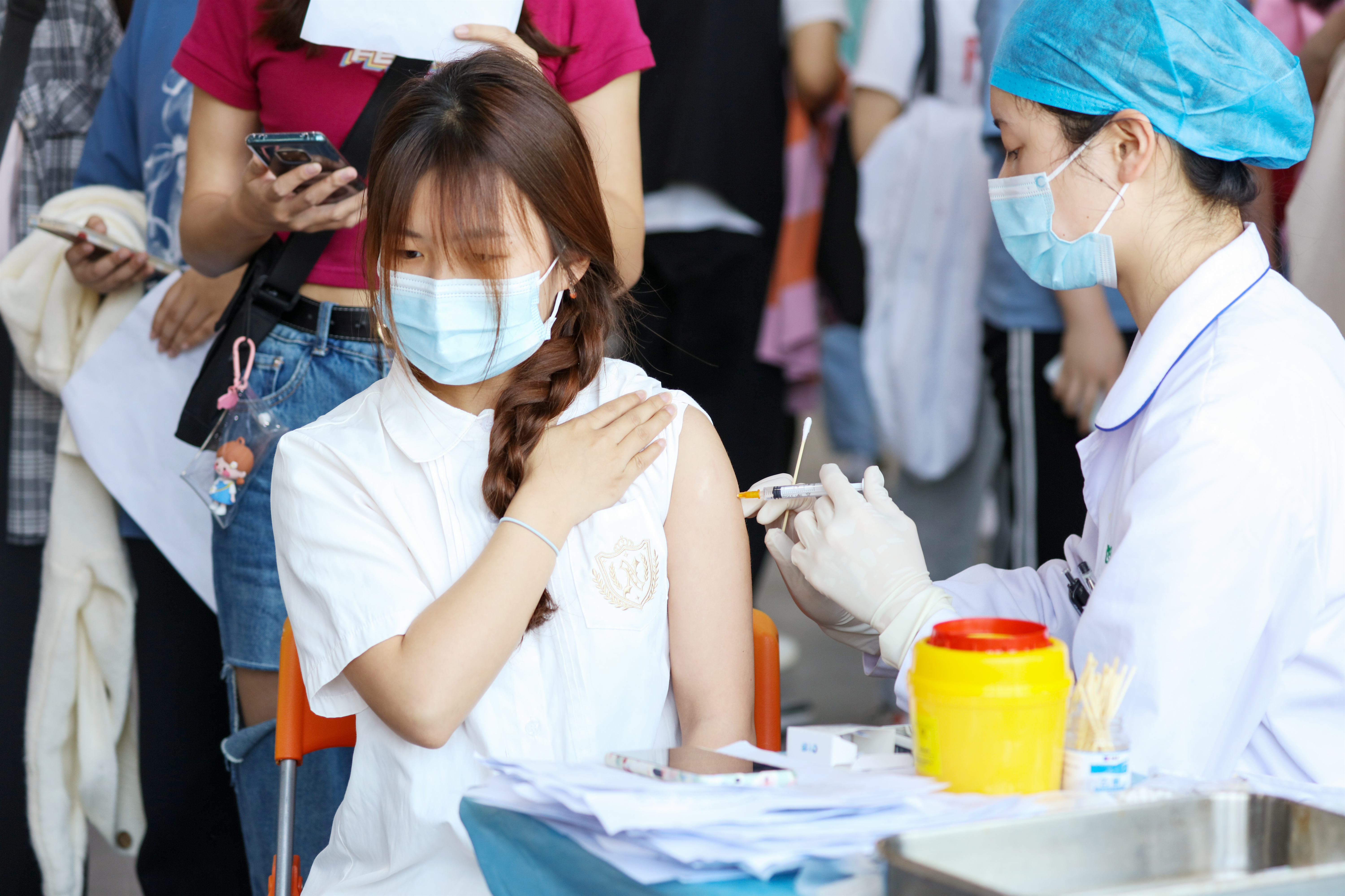 “我们为本次接种准备了一万剂疫苗,争取实现全校范围第一针覆盖。”现场护士高亚琴表示。刚接种完疫苗的2020级经济学院国际商务专业泮永坤笑着说:“整个过程大家排队有序,医生护士们效率也很高。在学校里就能打疫苗,感觉非常方便。”