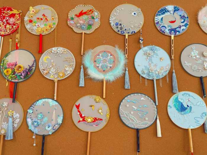 “学生们喜欢将古代元素和现代风格进行融合,不少学生的配饰设计上大胆将古代纹样和现代卡通形象结合,展现不一样的风采。”课程负责人洪叶介绍,《服饰配件设计》课程以汉绣作为基础,所选配饰的制作要求学生在汉绣的基础上,结合其他手工工艺的技法,将汉绣与其它绣法进行一些融合,珠绣、法式刺绣等技艺的结合,让汉绣有全新的展示效果。