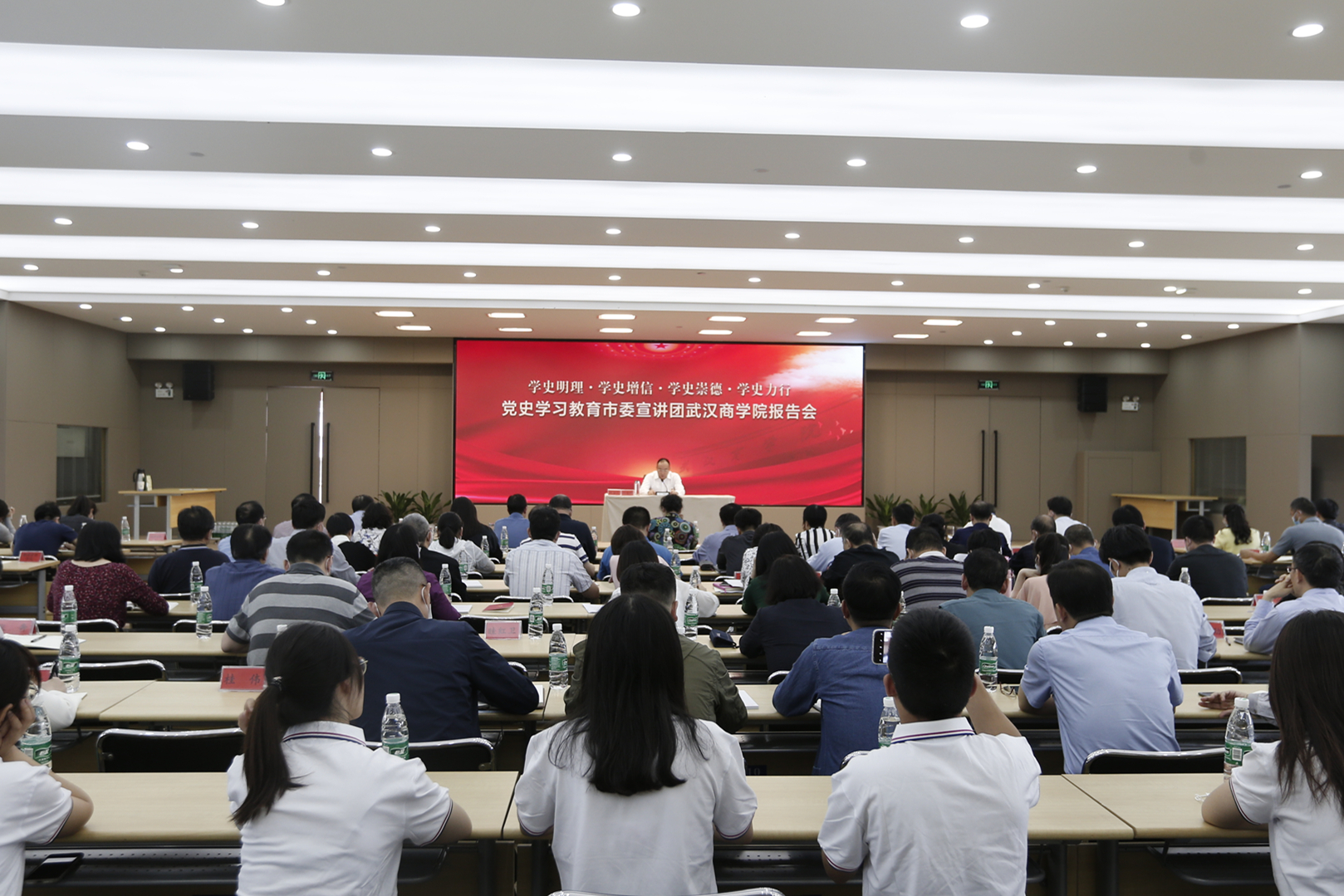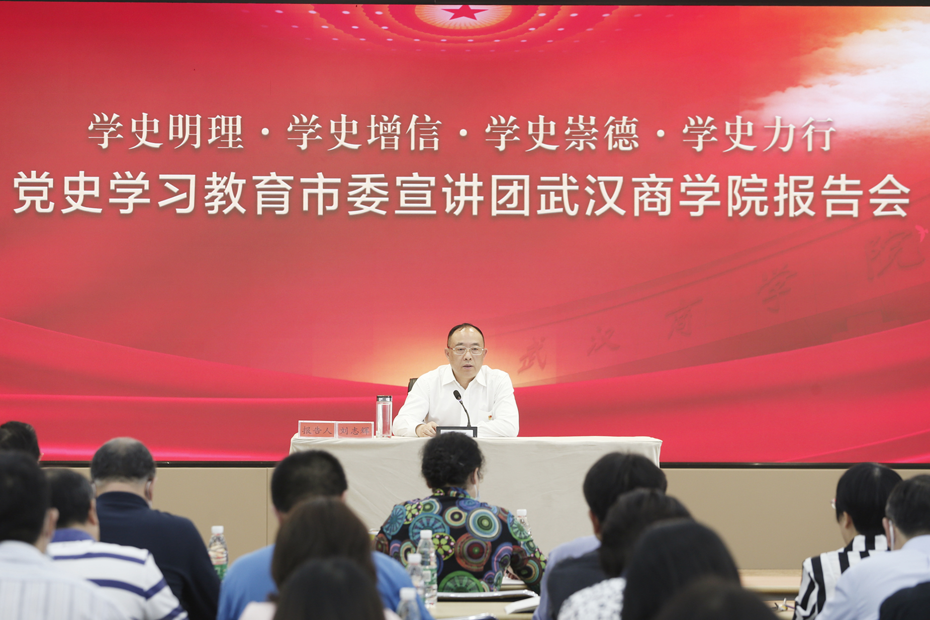 宣讲报告中,刘志辉围绕习近平总书记在党史学习教育动员大会上的重要讲话精神和关于党的历史的重要论述,从“学党史上下功夫”“悟思想上出硬招”“办实事上见实效”“开新局上求突破”“谋事业上抓落实”五个方面来作辅导报告。整个报告内容丰富,重点突出,脉络清晰,分析深刻,以独特的理论视角、生动鲜活的典型实例,阐述了中国共产党艰苦卓绝、光荣辉煌的奋斗历程,帮助参会党员师生对党光辉艰辛的百年奋斗历程有了更深层次的理解和认识。报告结合学校实际,对学校开展党史学习教育提出新要求。刘志辉表示,学校应准确把握党史学习教育的目标任务,做好党史学习教育与推动学校高质量发展的“结合文章”。通过学习党史,全校党员师生要更加紧密地团结在以习近平同志为核心的党中央周围,认真贯彻中央决策部署和省委、市委工作要求,进一步增强政治意识、感悟思想伟力、强化责任担当、凝聚发展共识,全面开启建设地方一流应用型大学新征程,为服务建设现代化大武汉、全面建设社会主义现代化国家贡献高校力量,以优异成绩迎接党的百年华诞!