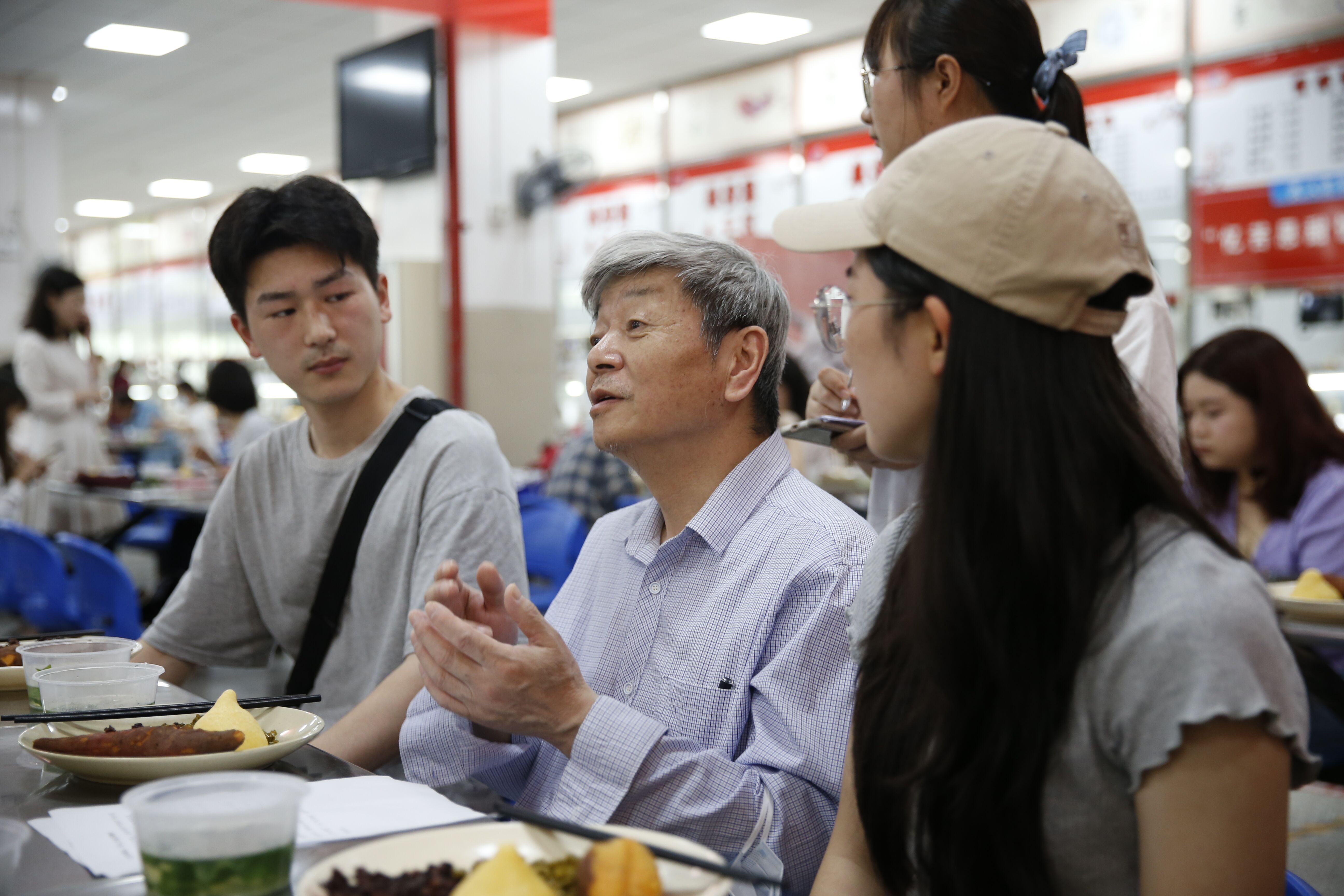 活动现场,学校的老教师现场当起“讲解员”,为在场师生讲述“忆苦思甜饭”、红军长征、武汉解放等红色故事。餐厅的一角,该校年近7旬的离退休党员教师徐伟民身边围坐着学生,津津有味地听徐伟民讲述72年前武汉解放的历史,与同学们一起重温那段军民鱼水情、故土忆往昔的革命故事。“1949年的5月16日,解放军从岱家山经刘家庙往硚口方向开进汉口市区,汉口宣告解放。5月16日,也就成为了武汉解放纪念日。”出生于1952年的徐伟民,经历过三年自然灾害时期,后在我校工作直至退休。“武汉解放的历史,深刻诠释了党始终坚持和践行的初心使命,是我们党始终与人民同呼吸、共命运的生动体现。”徐伟民的讲述,也激起了现场师生的感触,“这是一堂很特别的党史思政课!现在的幸福生活来之不易,作为年轻的一代,我们也要永远听党话、跟党走!”2019级经济学院学生李仪说到。青年教师高映听完徐伟民的讲述后主动加了对方的联系方式:“听完武汉解放的故事,心里很有触动。作为青年教师,我更需要从党史中汲取前进力量,在今后的工作上,抓好育人实效。”