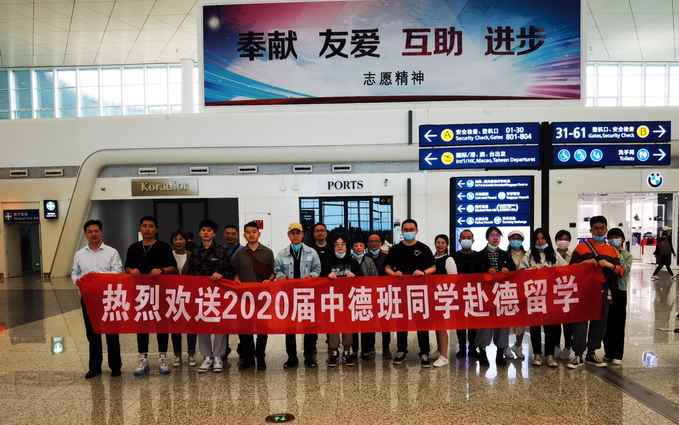本网讯 5月13日,国际教育学院2020届中德国际班9名学生顺利启程赴德国留学。同学们顺利通过留学考试,获得留学签证,严格按照中德两国的疫情防控措施,完成疫苗接种工作和48小时内的核酸检测,顺利启程。同学们通过网络课程学习,已完成部分语言课程学习任务,一批学生直接进入大学学习本科阶段的专业课程,攻读本科学士学位。