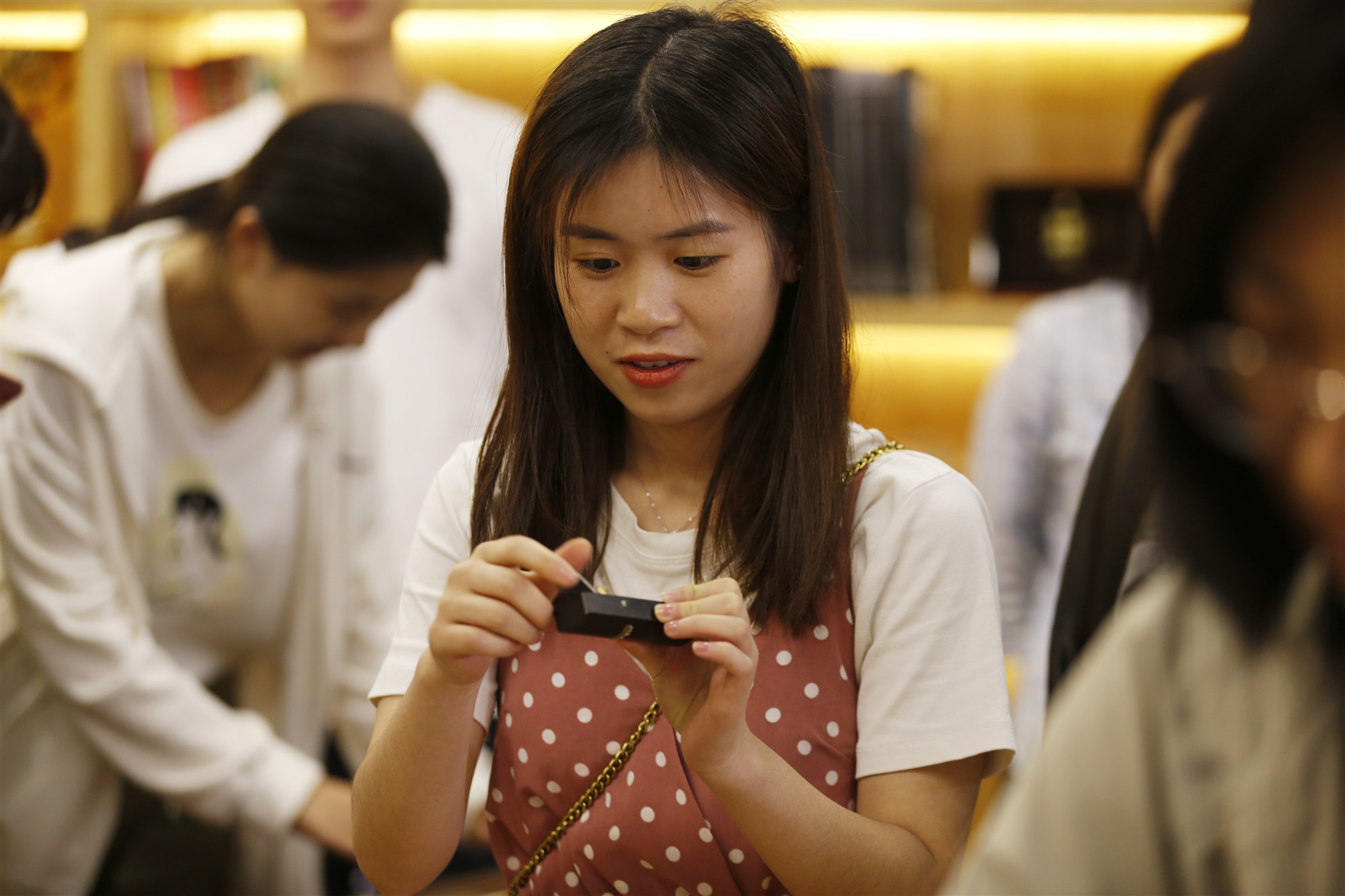 现场同学忍不住纷纷拿起手机记录下这一美妙的时刻,在古琴声中感受中国传统文化的魅力。